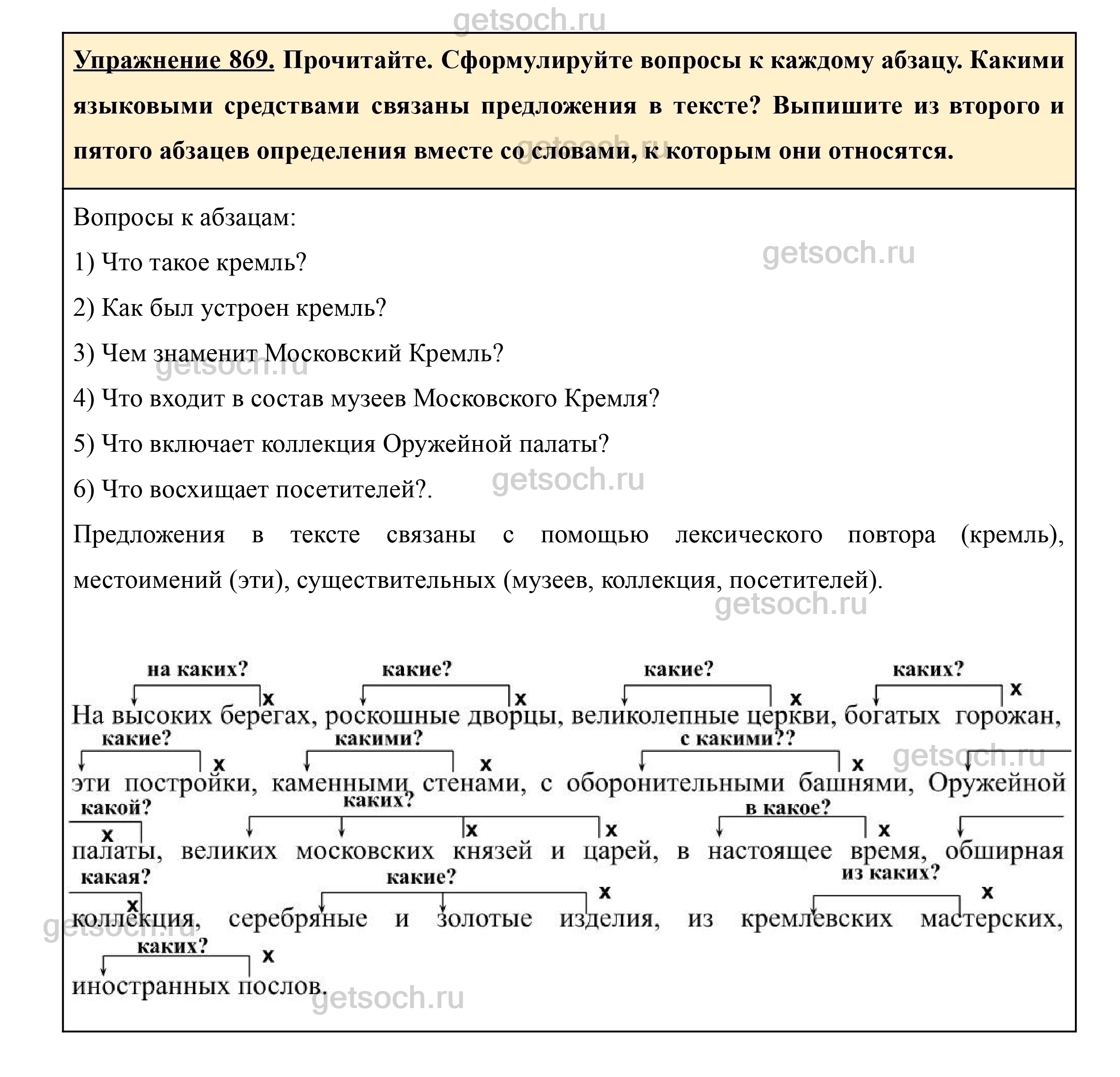 Рассмотрим ответы на Упражнение 869 из учебника по русскому языку для 5 класса Ладыженской
