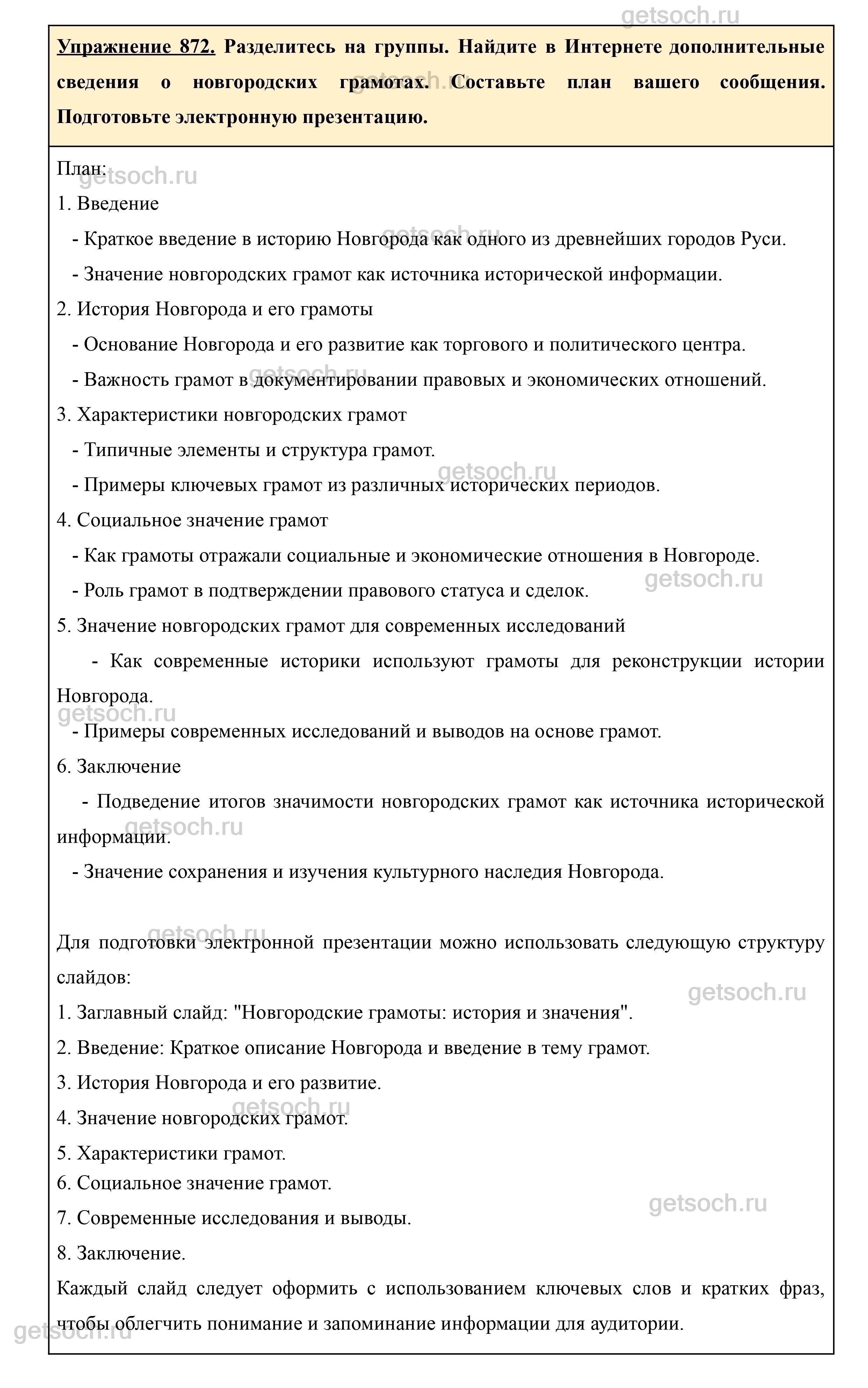 Рассмотрим ответы на Упражнение 872 из учебника по русскому языку для 5 класса Ладыженской