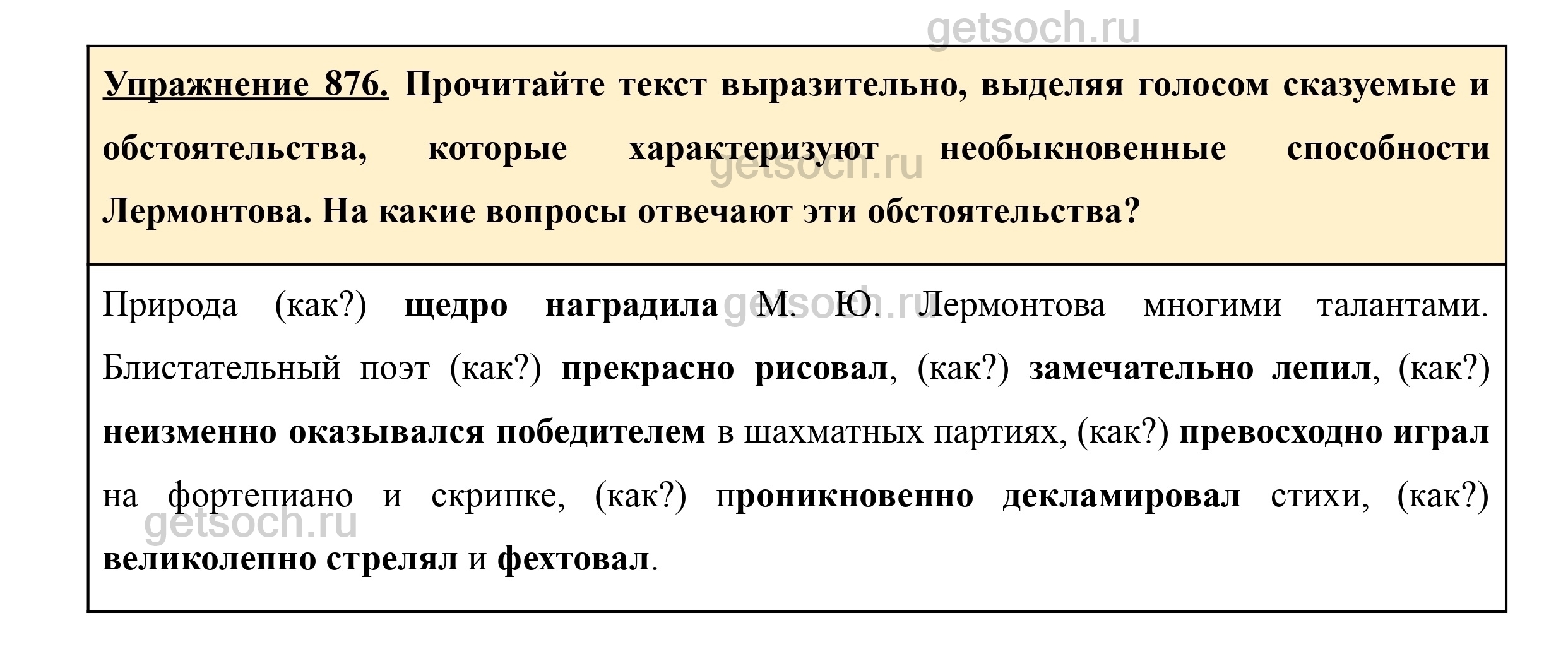 Рассмотрим ответы на Упражнение 876 из учебника по русскому языку для 5 класса Ладыженской