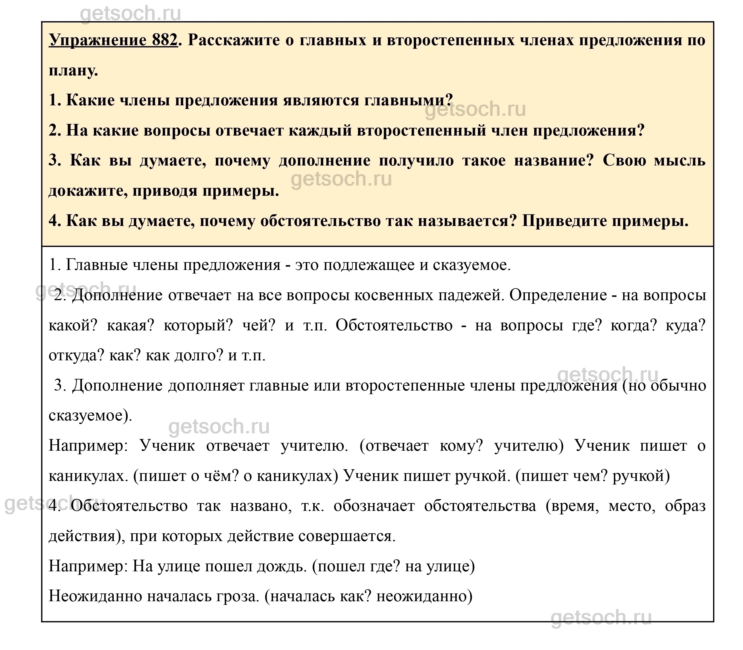 Рассмотрим ответы на Упражнение 882 из учебника по русскому языку для 5 класса Ладыженской