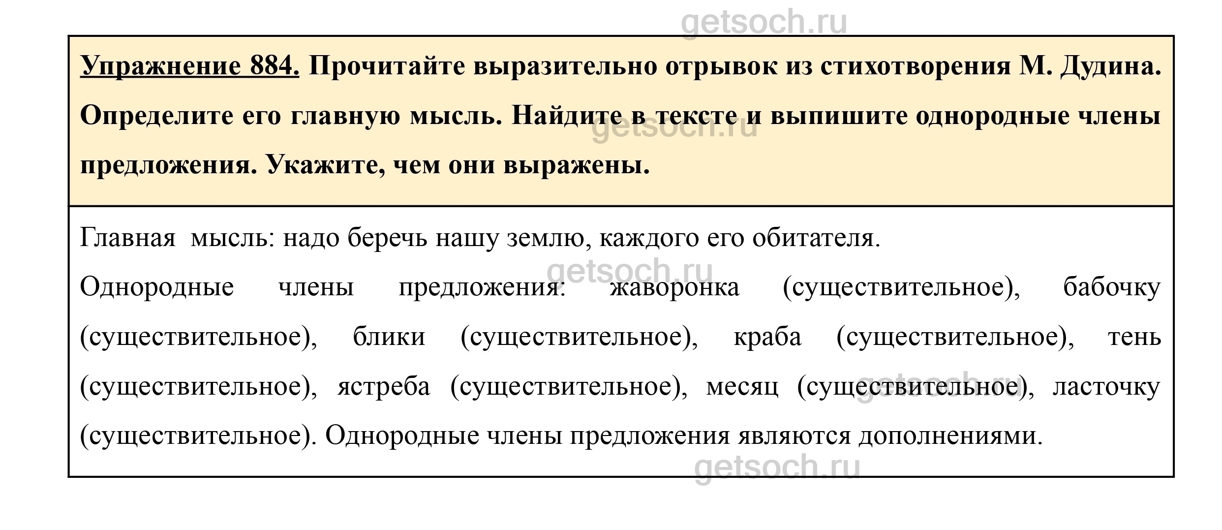 Рассмотрим ответы на Упражнение 884 из учебника по русскому языку для 5 класса Ладыженской