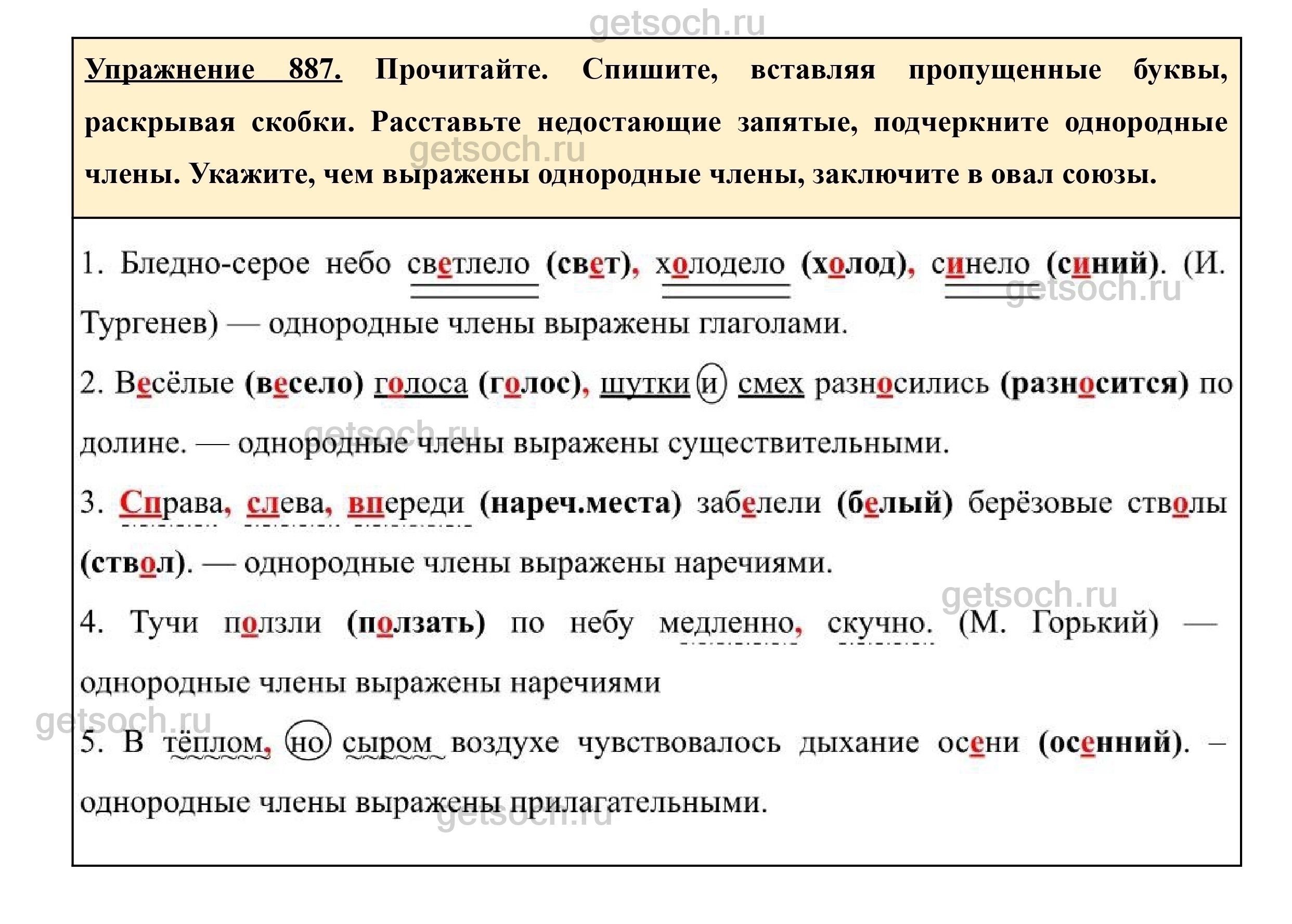 Рассмотрим ответы на Упражнение 887 из учебника по русскому языку для 5 класса Ладыженской