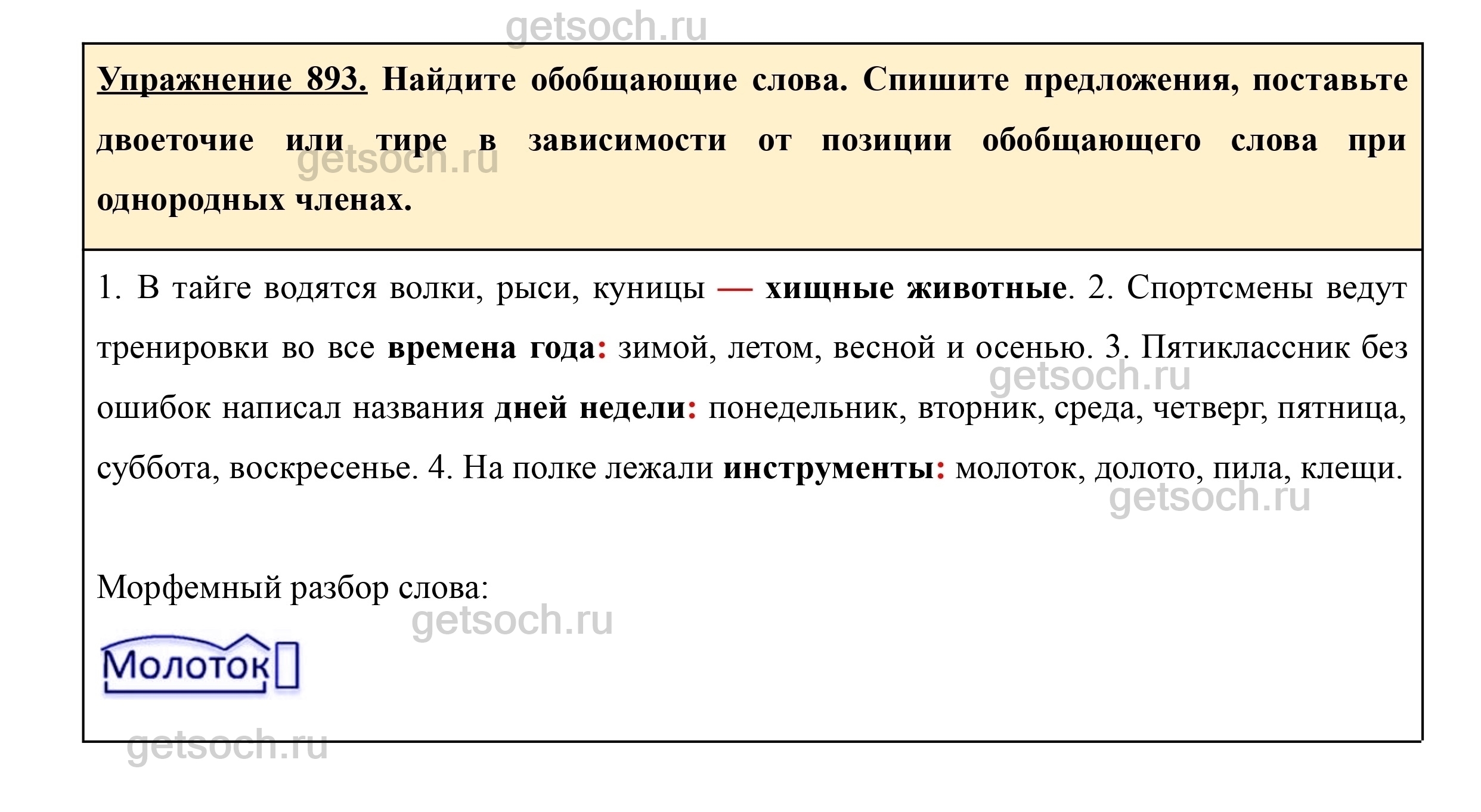 Рассмотрим ответы на Упражнение 893 из учебника по русскому языку для 5 класса Ладыженской