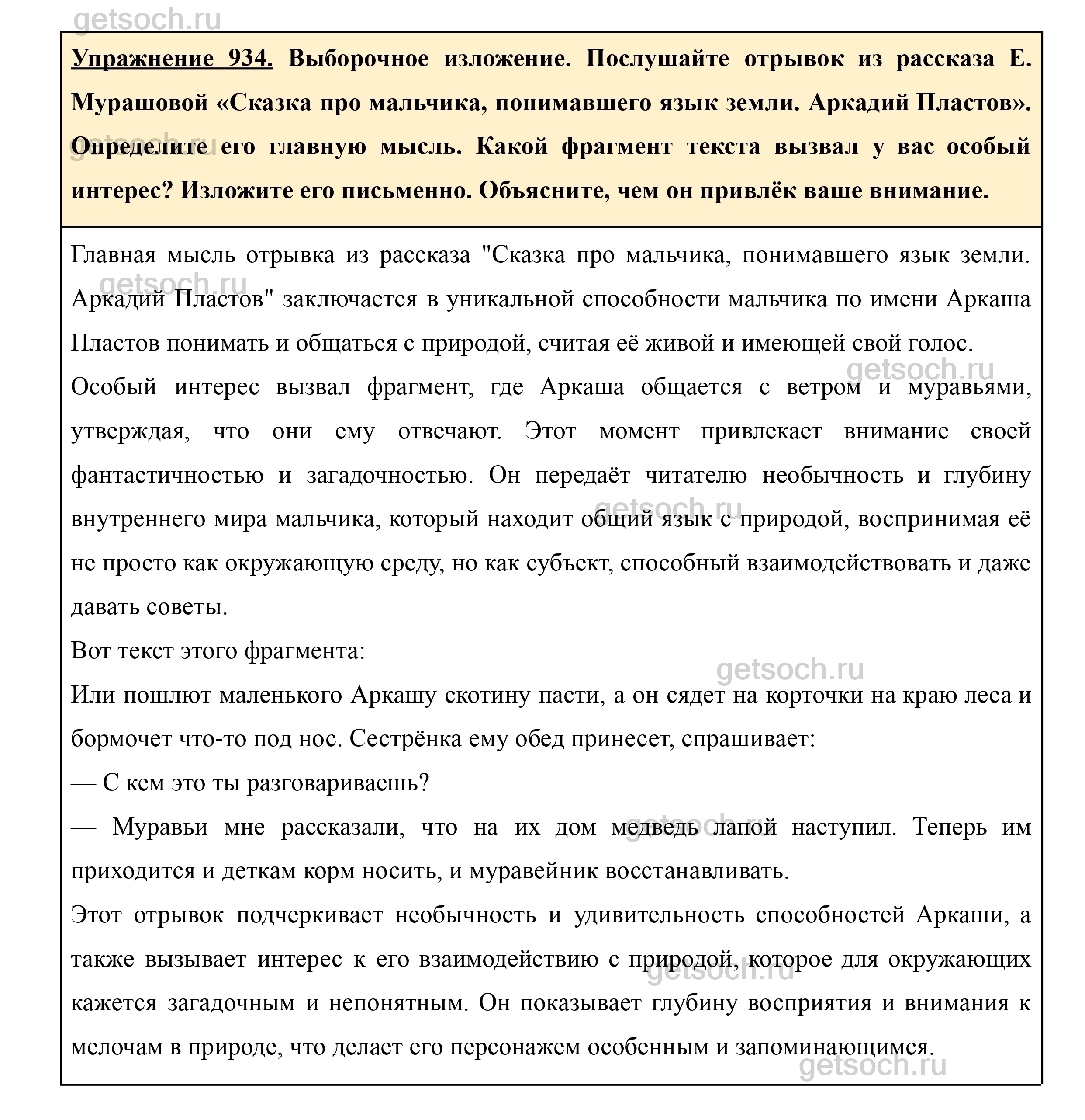 Рассмотрим ответы на Упражнение 934 из учебника по русскому языку для 5 класса Ладыженской