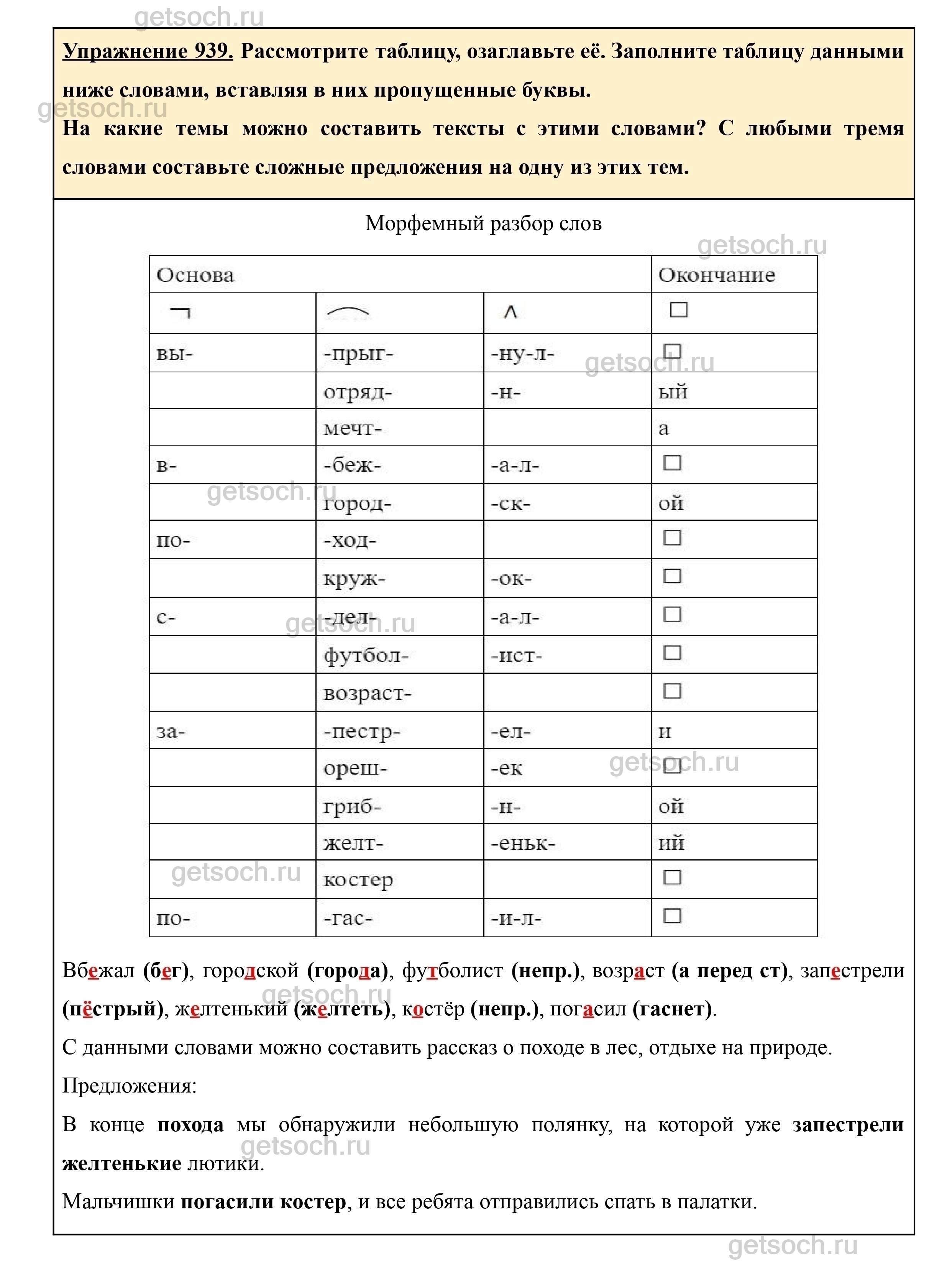 Рассмотрим ответы на Упражнение 939 из учебника по русскому языку для 5 класса Ладыженской