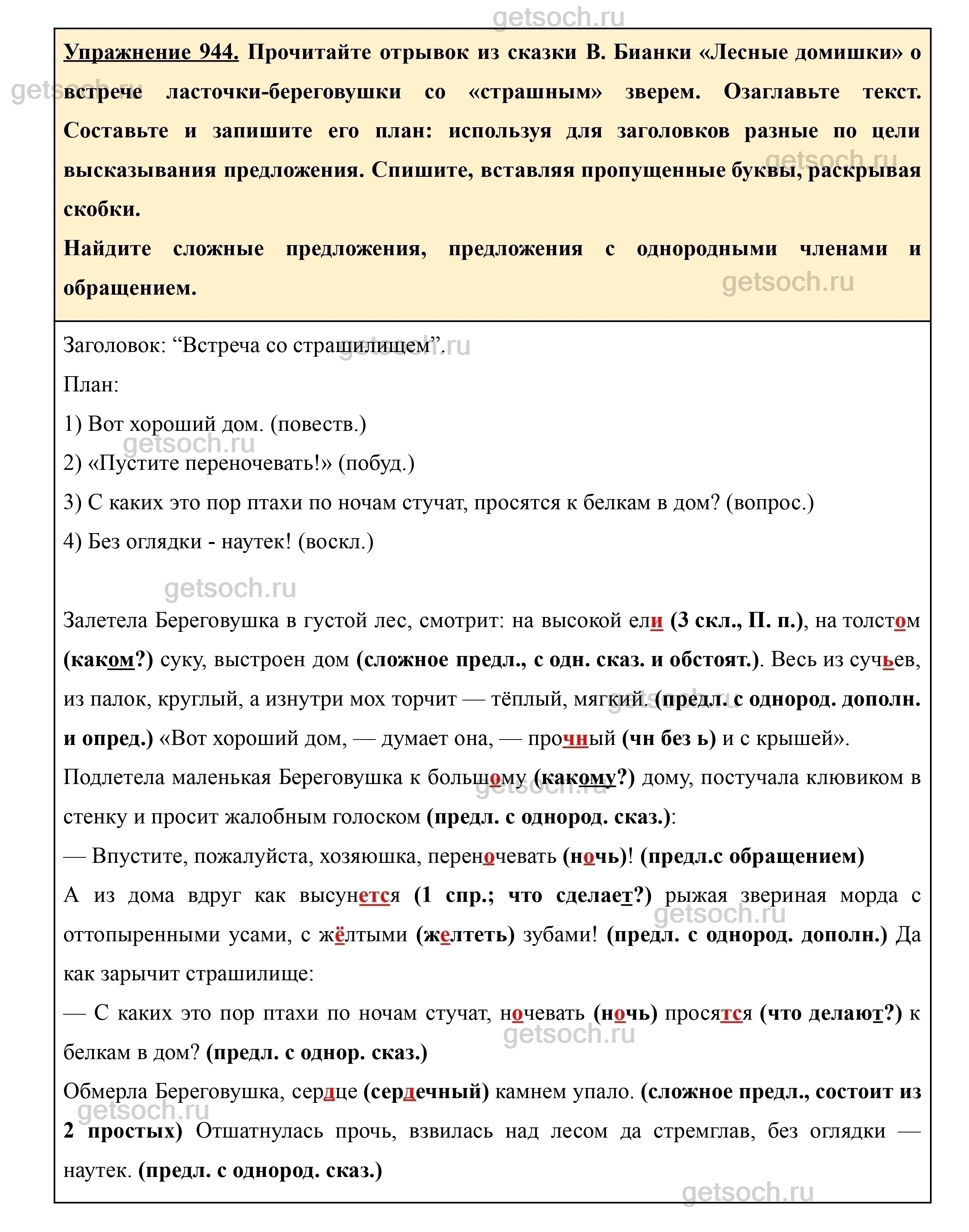 Рассмотрим ответы на Упражнение 944 из учебника по русскому языку для 5 класса Ладыженской