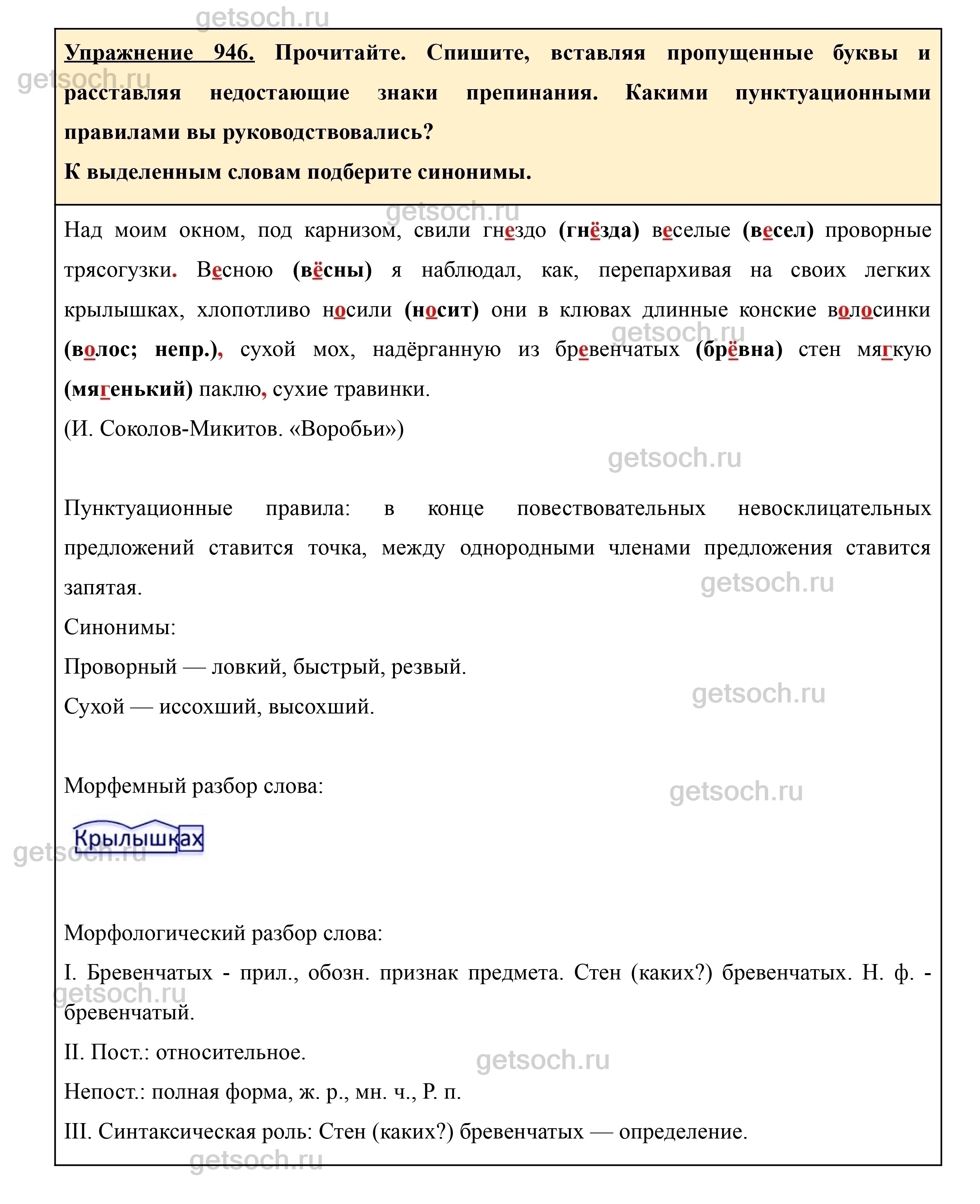 Рассмотрим ответы на Упражнение 946 из учебника по русскому языку для 5 класса Ладыженской