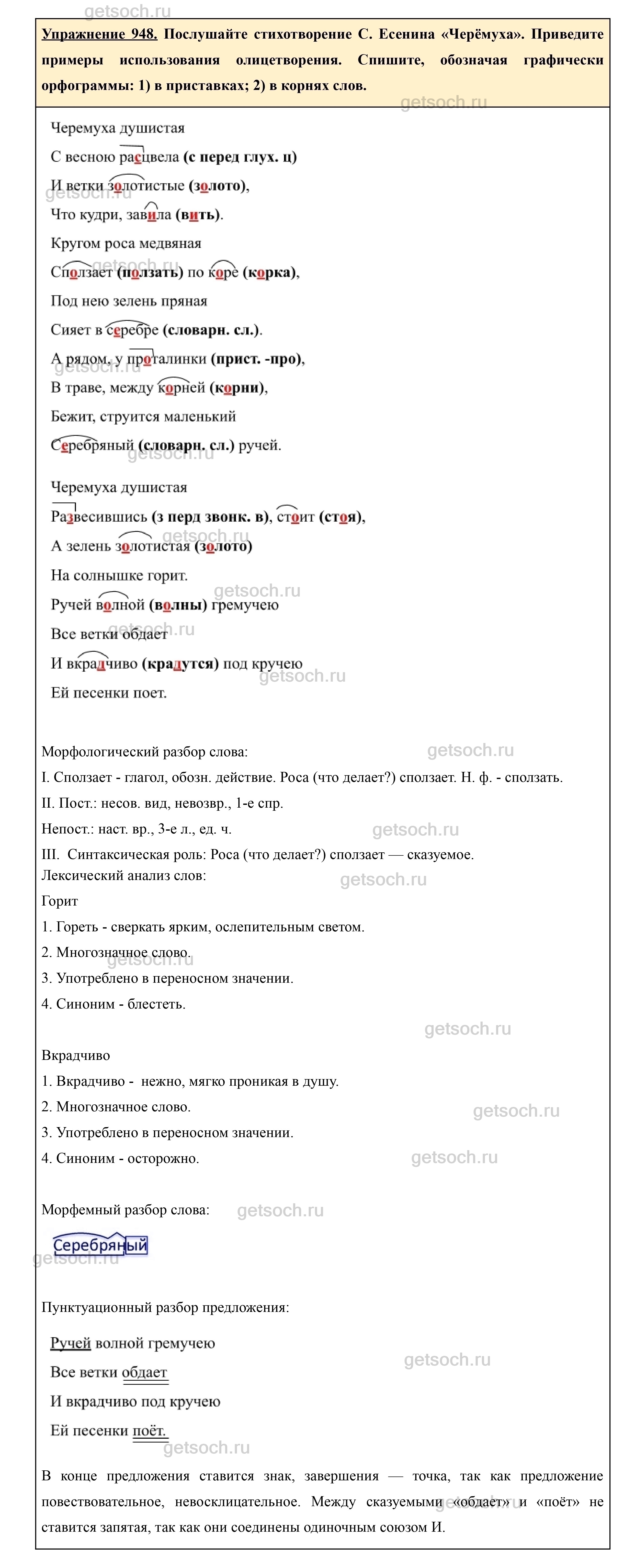 Рассмотрим ответы на Упражнение 948 из учебника по русскому языку для 5 класса Ладыженской