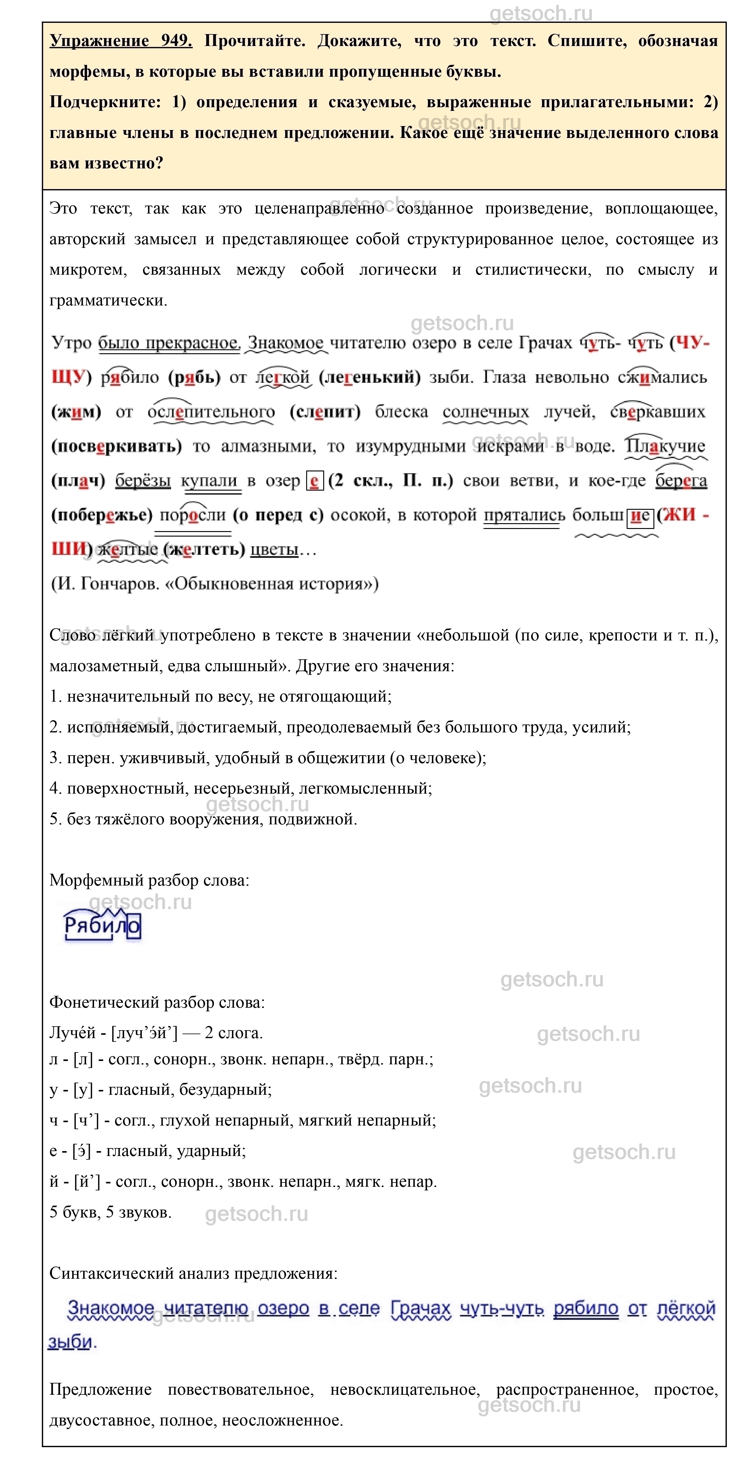 Рассмотрим ответы на Упражнение 949 из учебника по русскому языку для 5 класса Ладыженской