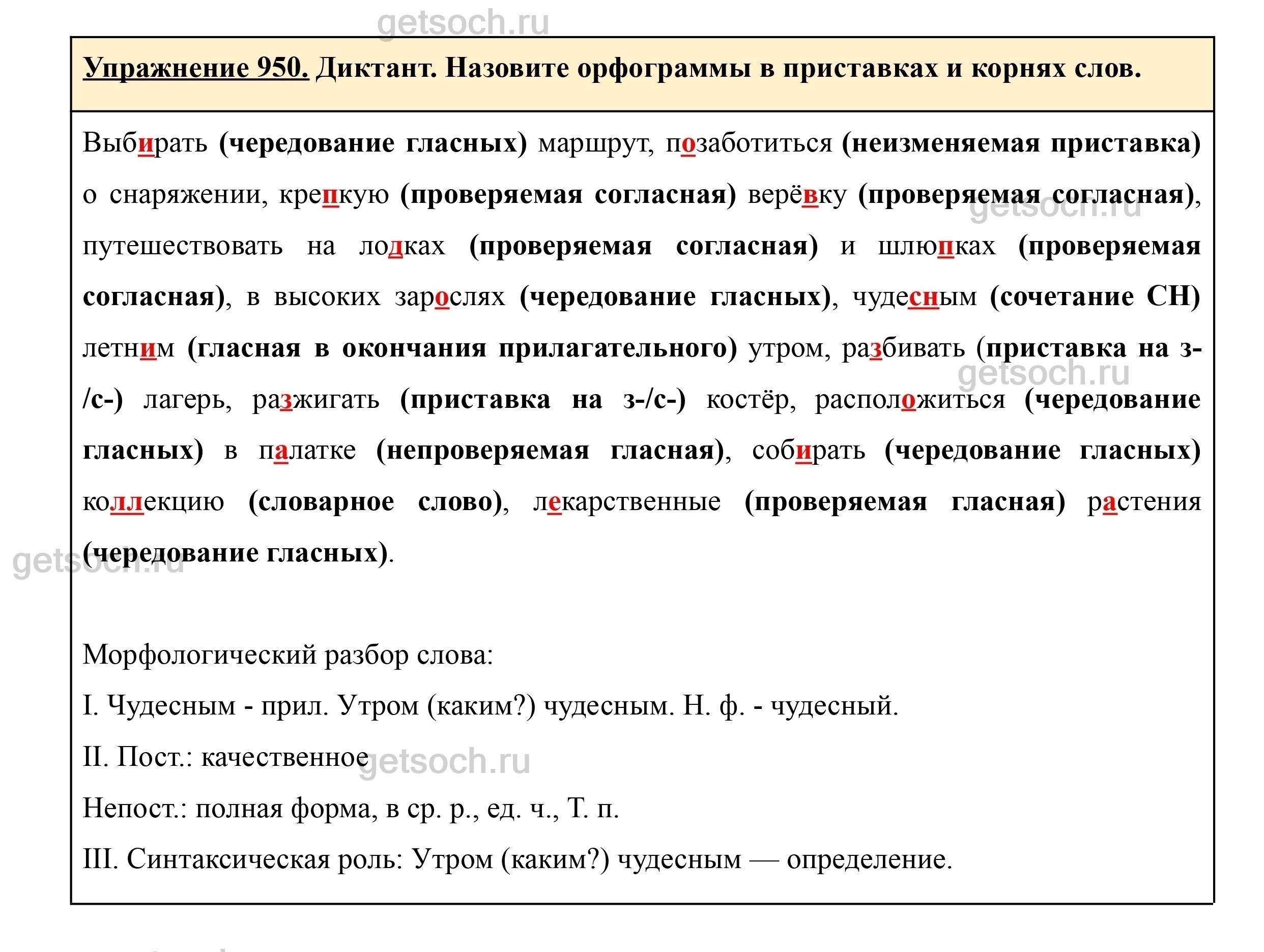 Рассмотрим ответы на Упражнение 950 из учебника по русскому языку для 5 класса Ладыженской
