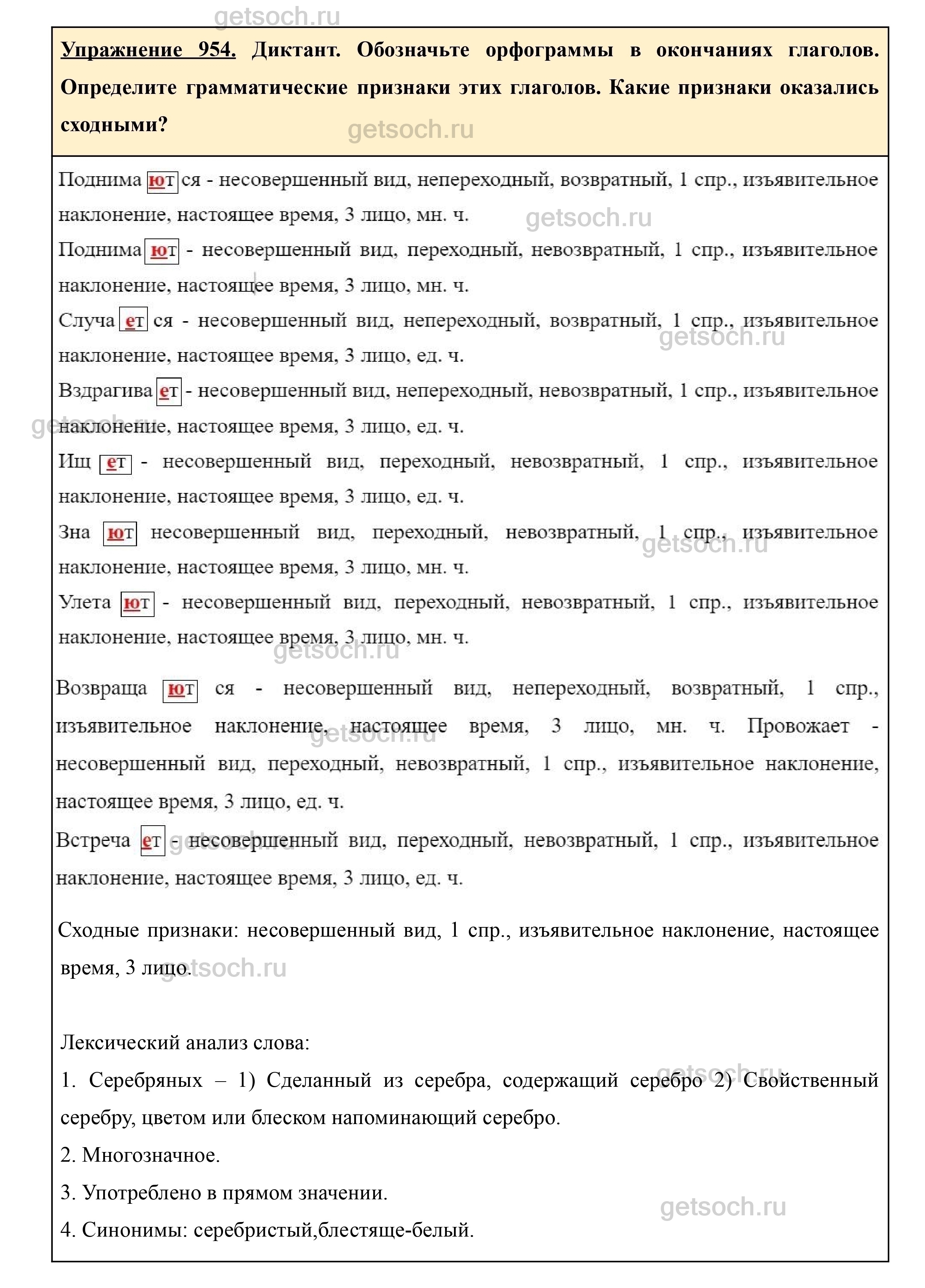 Рассмотрим ответы на Упражнение 954 из учебника по русскому языку для 5 класса Ладыженской