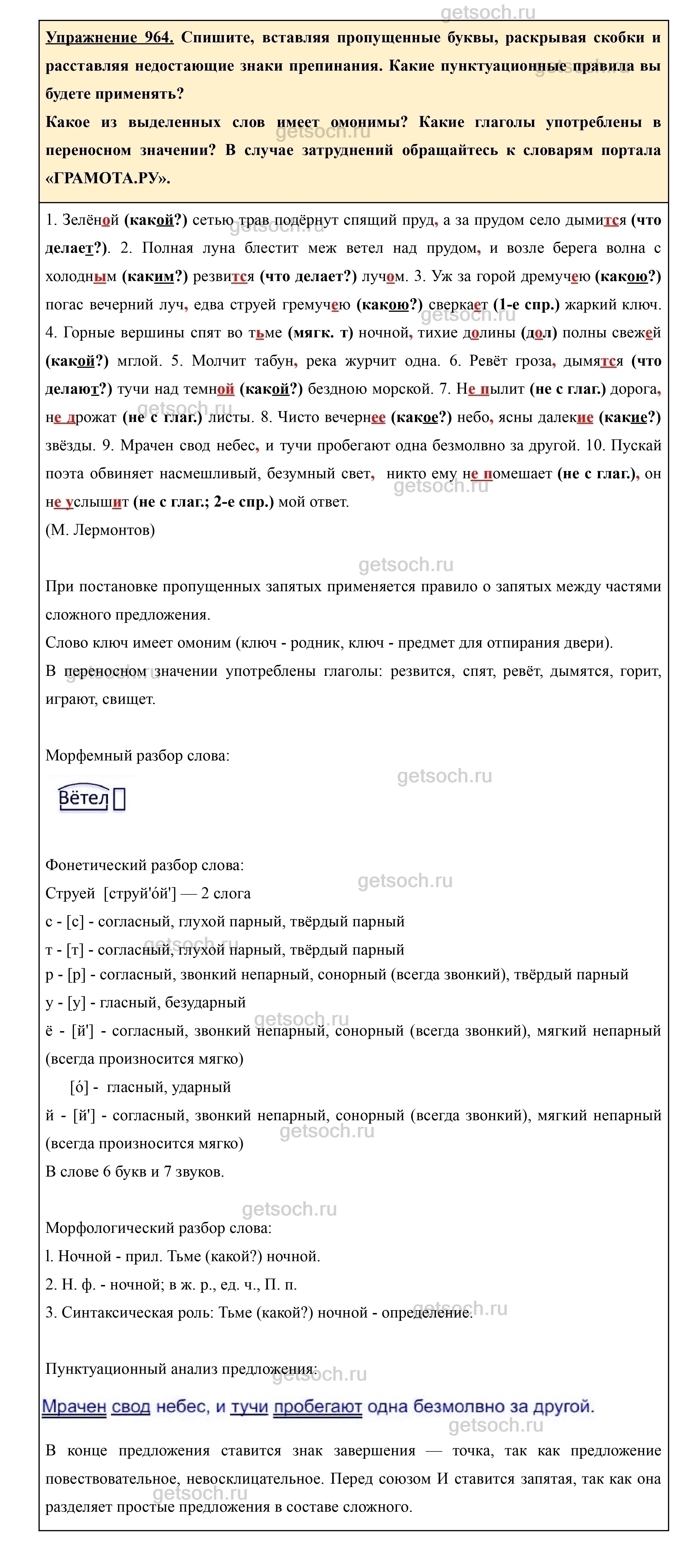 Рассмотрим ответы на Упражнение 964 из учебника по русскому языку для 5 класса Ладыженской