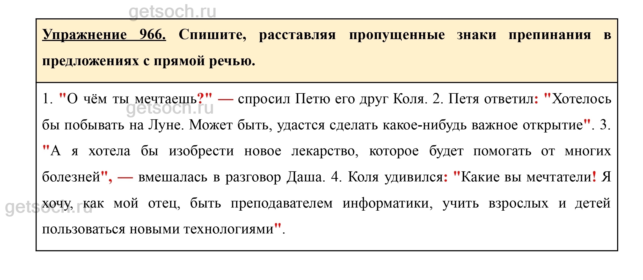 Рассмотрим ответы на Упражнение 966 из учебника по русскому языку для 5 класса Ладыженской