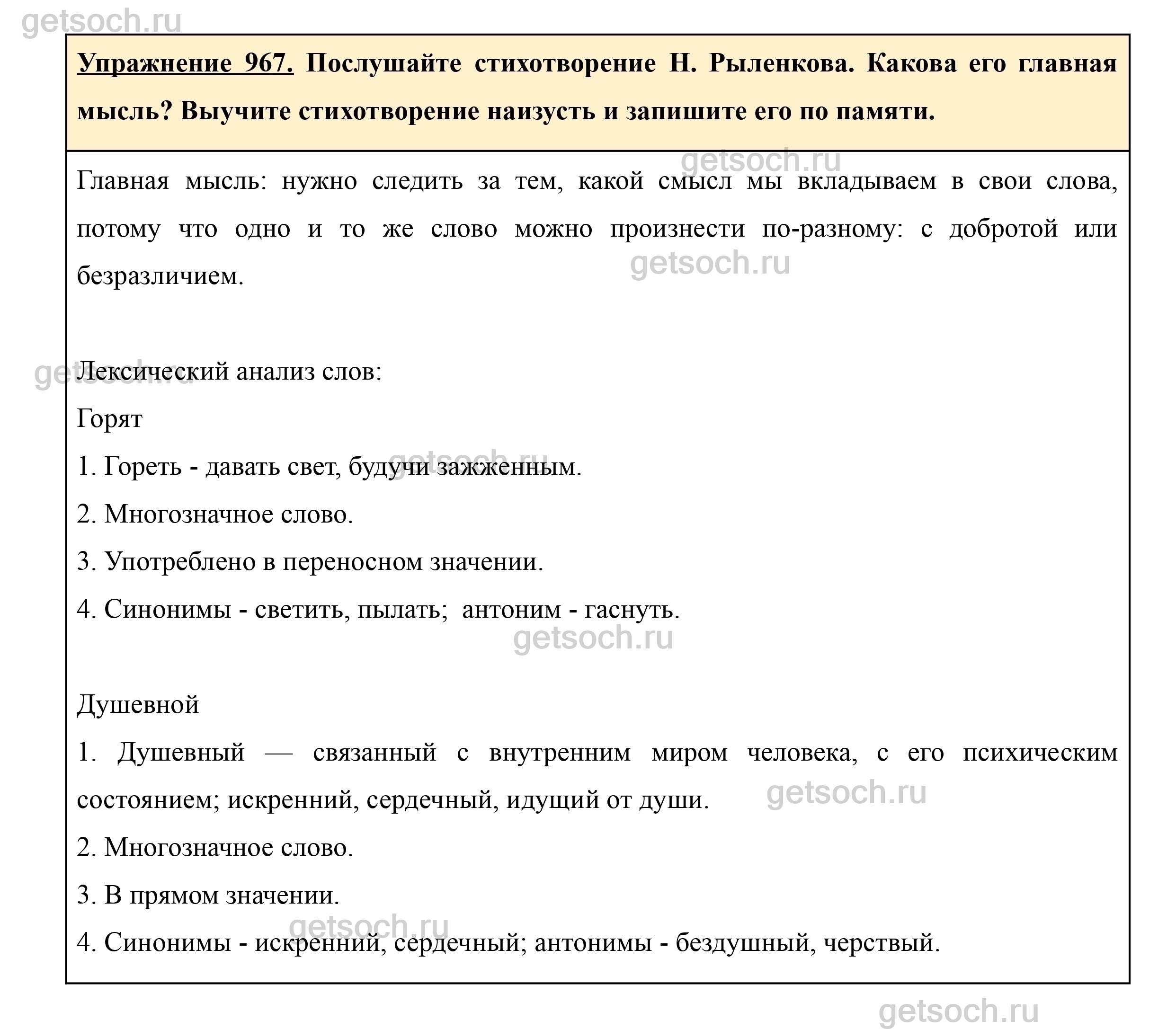 Рассмотрим ответы на Упражнение 967 из учебника по русскому языку для 5 класса Ладыженской