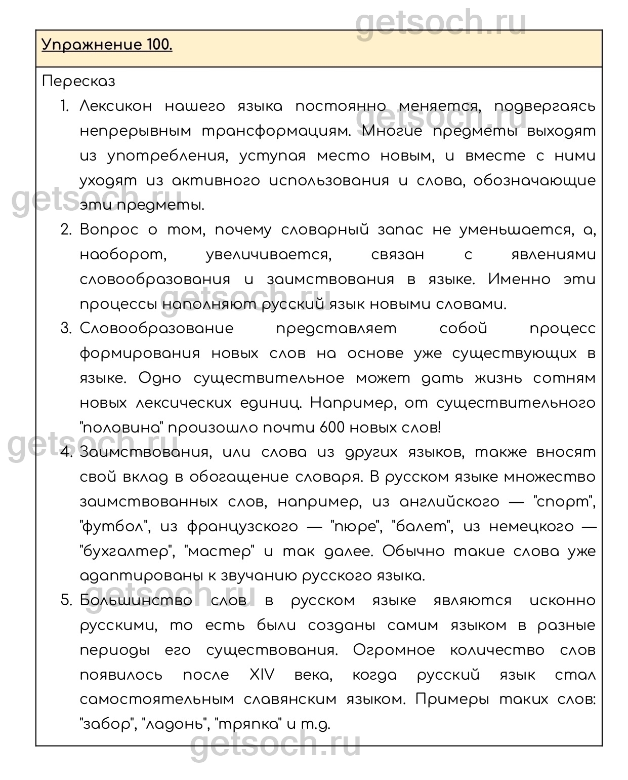 Рассмотрим ответы на Упражнение 100 из учебника по русскому языку для 6 класса Разумовской