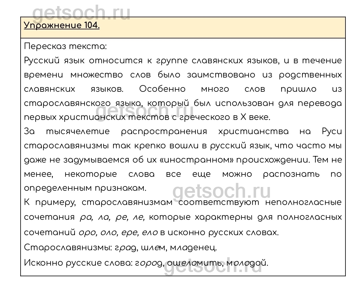 Рассмотрим ответы на Упражнение 104 из учебника по русскому языку для 6 класса Разумовской