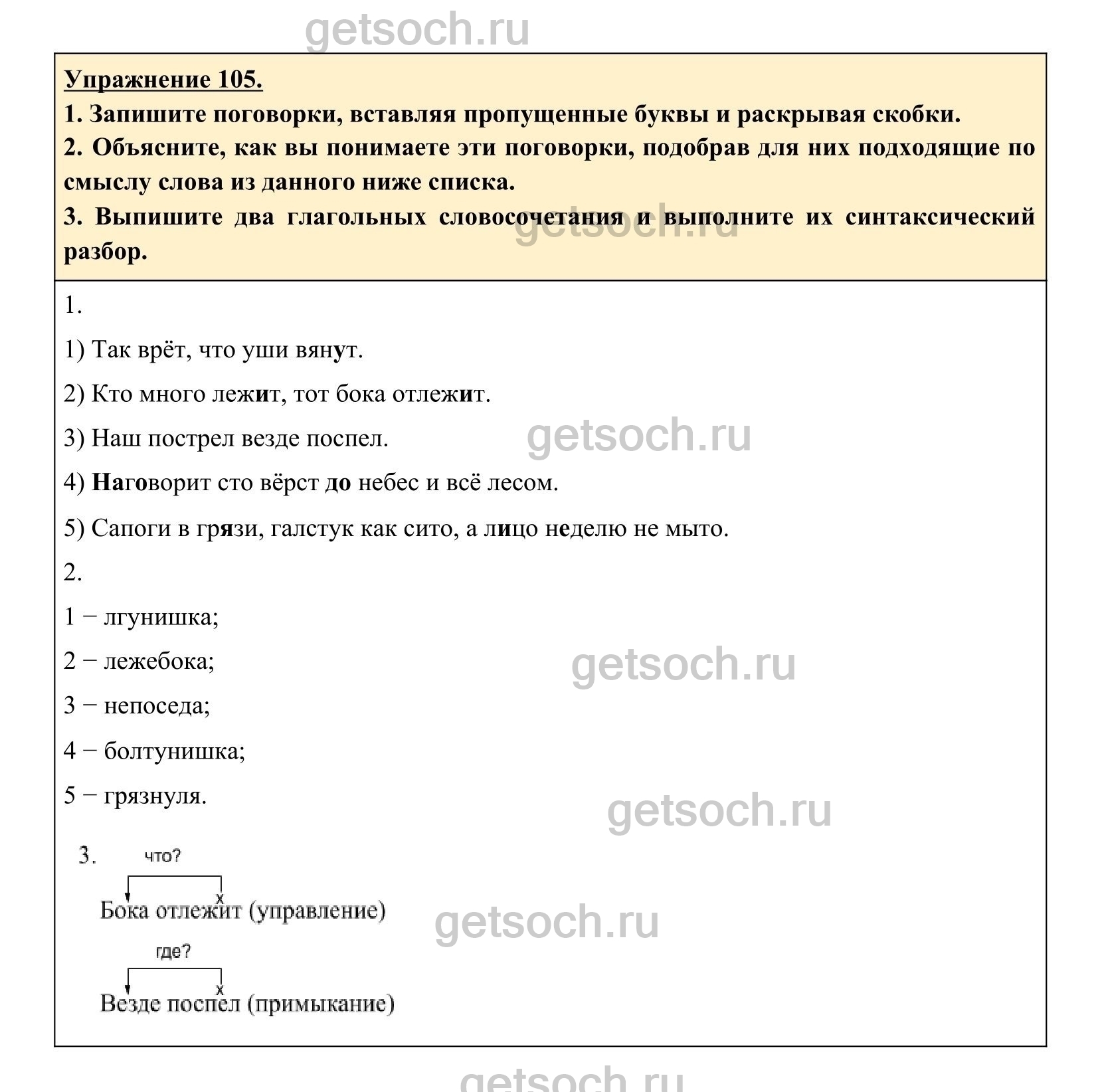 Рассмотрим ответы на Упражнение 105 из учебника по русскому языку для 6 класса Разумовской
