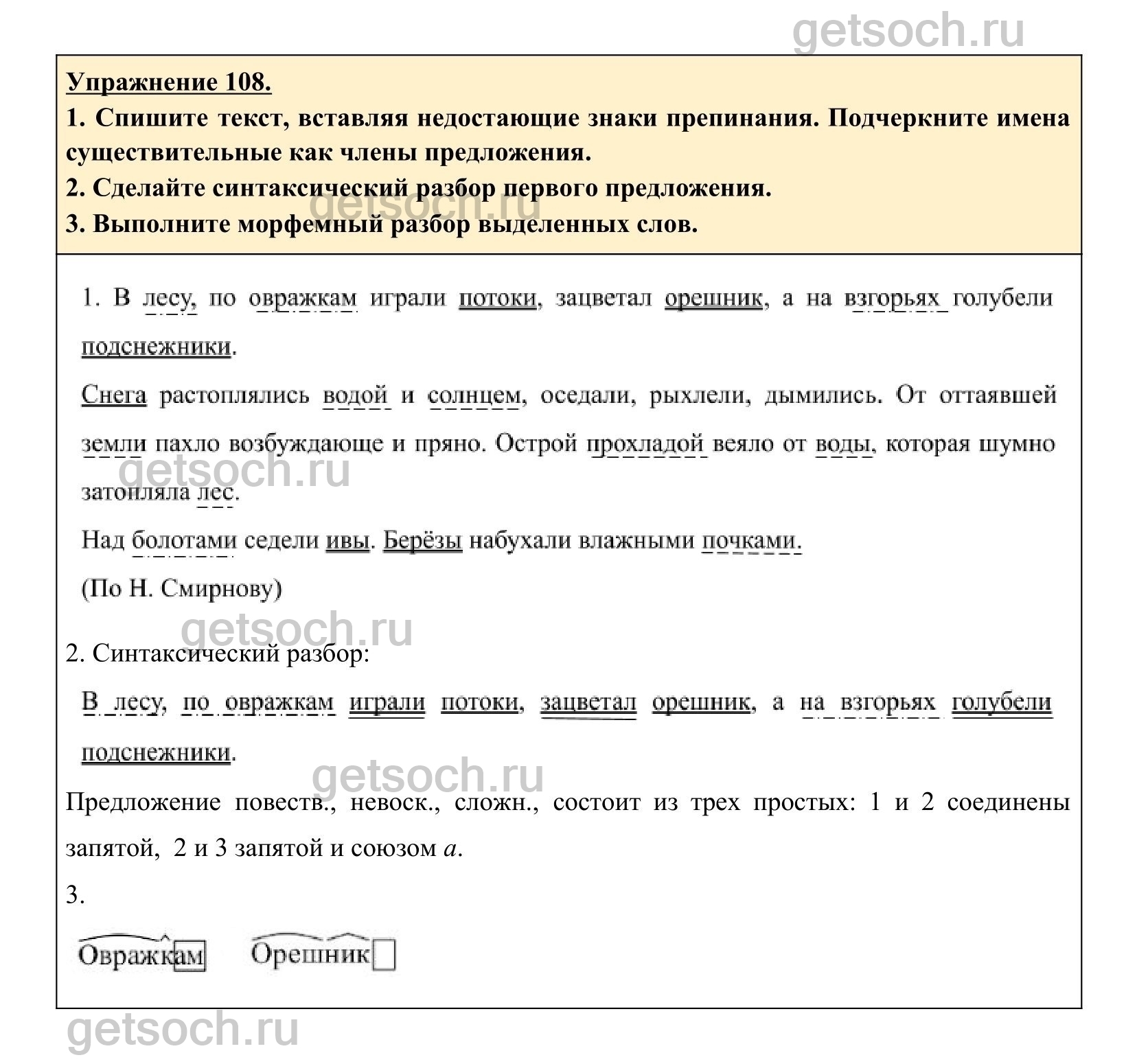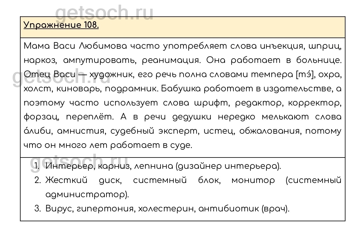 Рассмотрим ответы на Упражнение 108 из учебника по русскому языку для 6 класса Разумовской