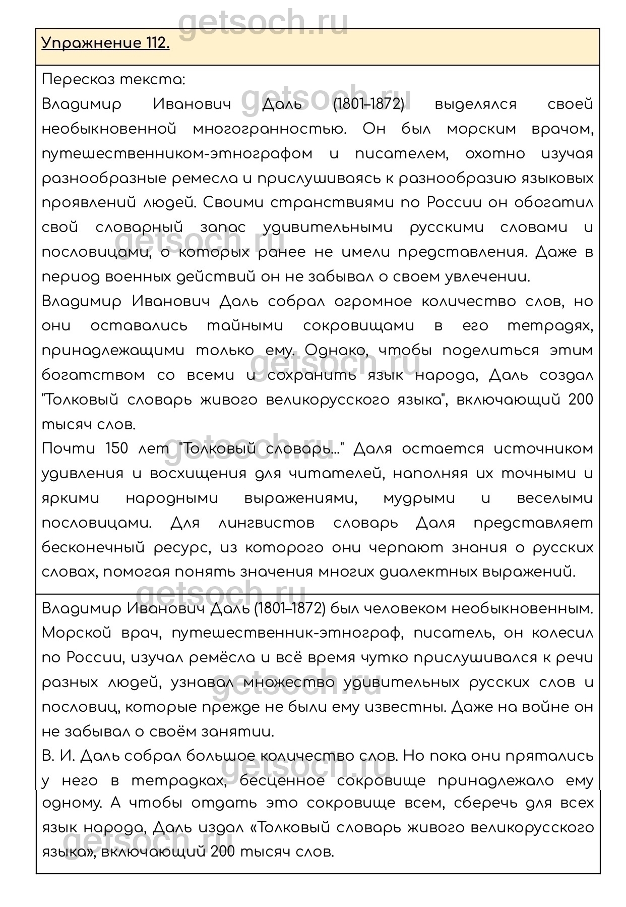 Рассмотрим ответы на Упражнение 112 из учебника по русскому языку для 6 класса Разумовской