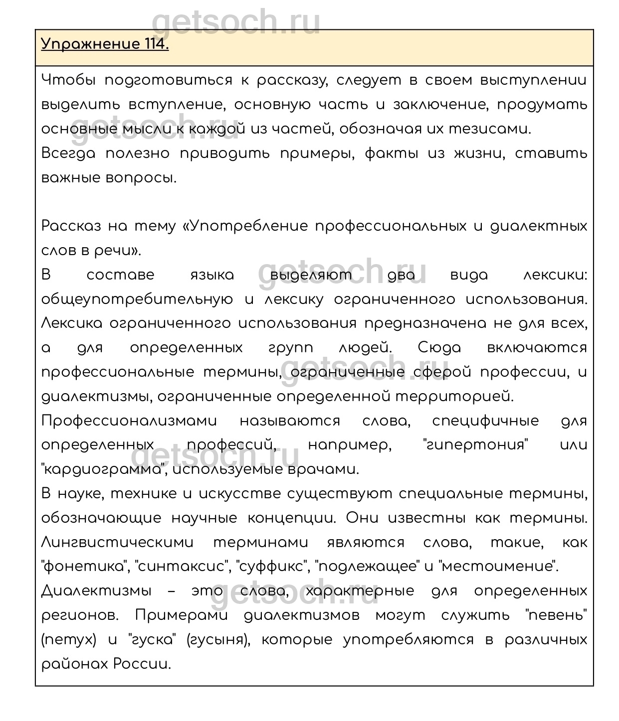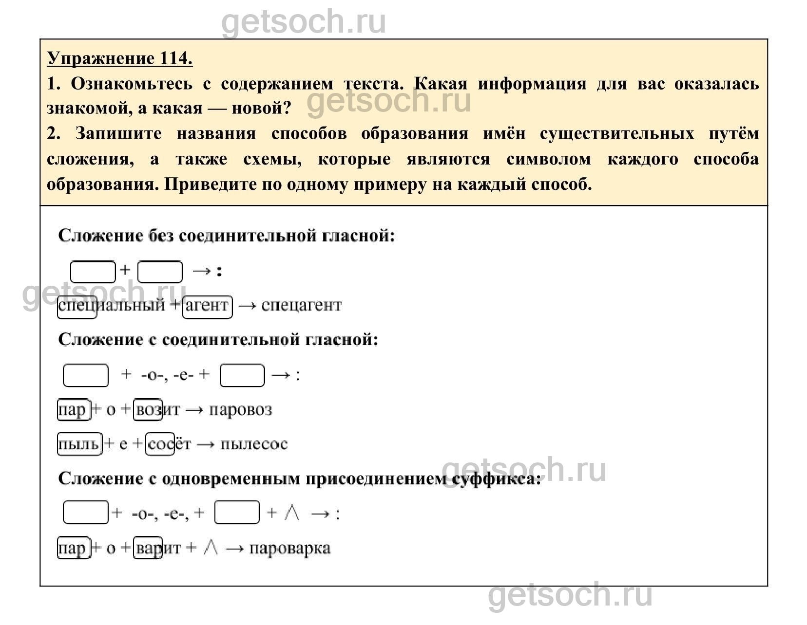 Рассмотрим ответы на Упражнение 114 из учебника по русскому языку для 6 класса Разумовской