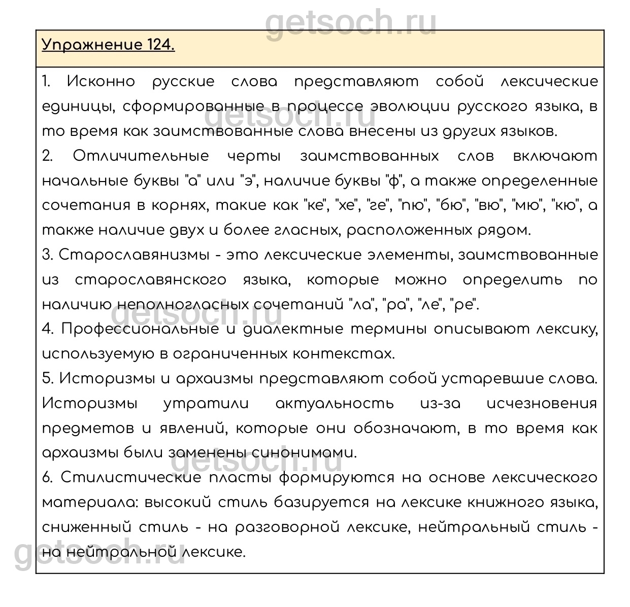 Рассмотрим ответы на Упражнение 124 из учебника по русскому языку для 6 класса Разумовской