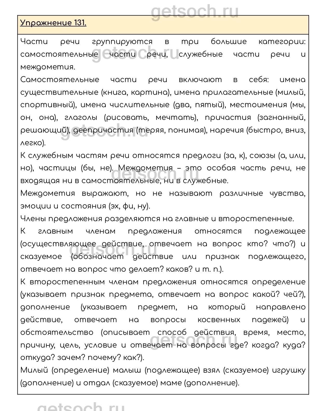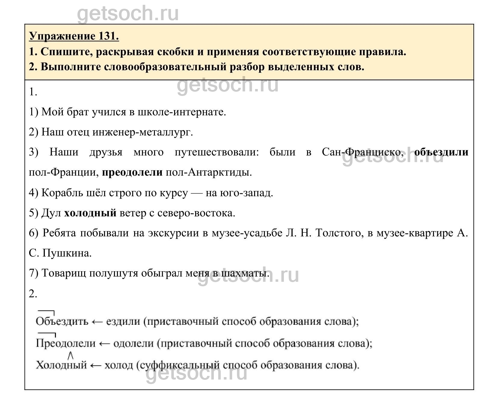 Рассмотрим ответы на Упражнение 131 из учебника по русскому языку для 6 класса Разумовской