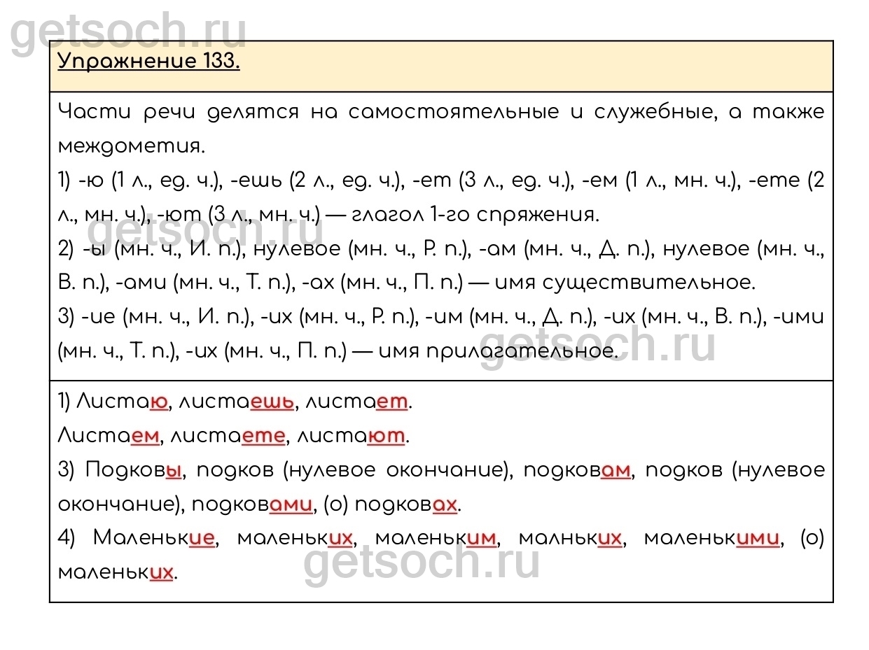 Рассмотрим ответы на Упражнение 133 из учебника по русскому языку для 6 класса Разумовской