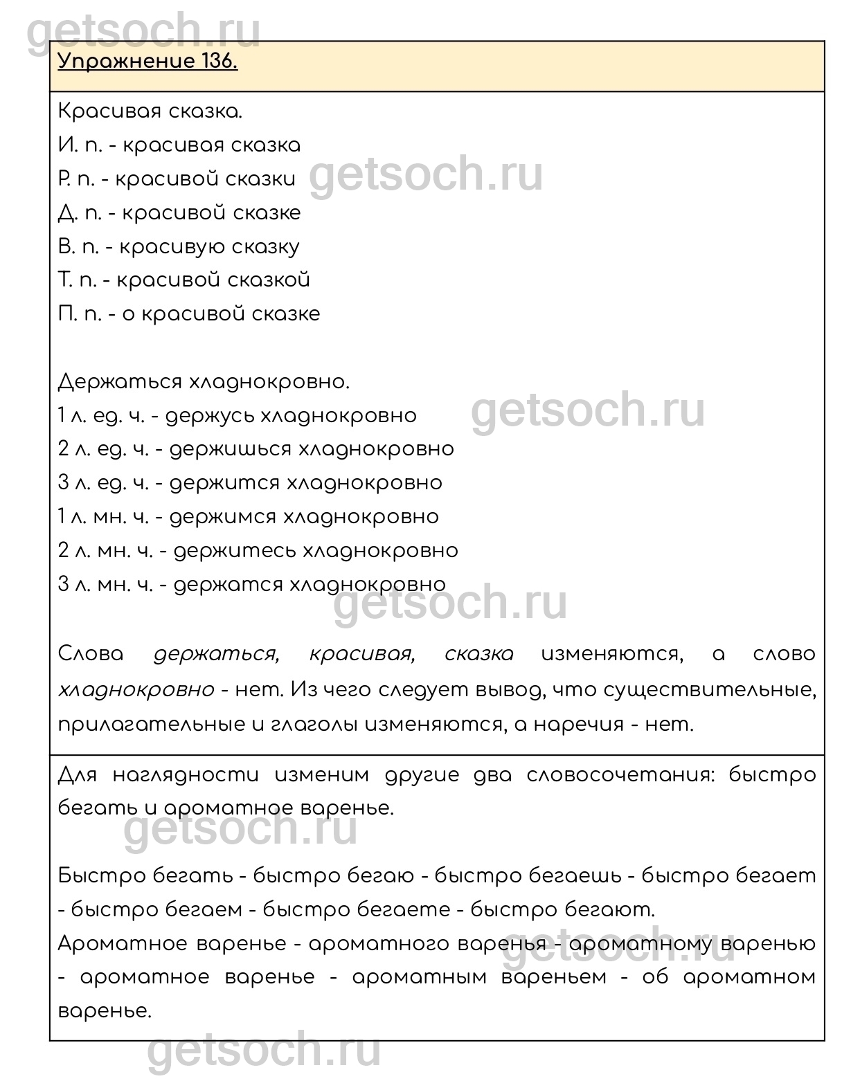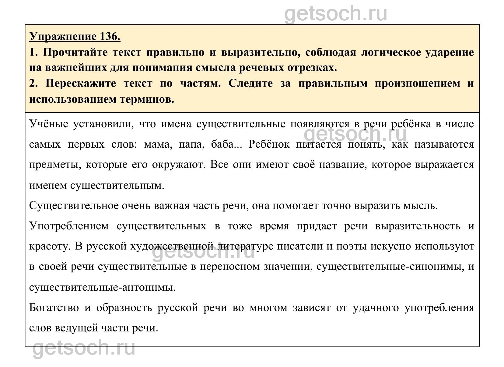 Рассмотрим ответы на Упражнение 136 из учебника по русскому языку для 6 класса Разумовской