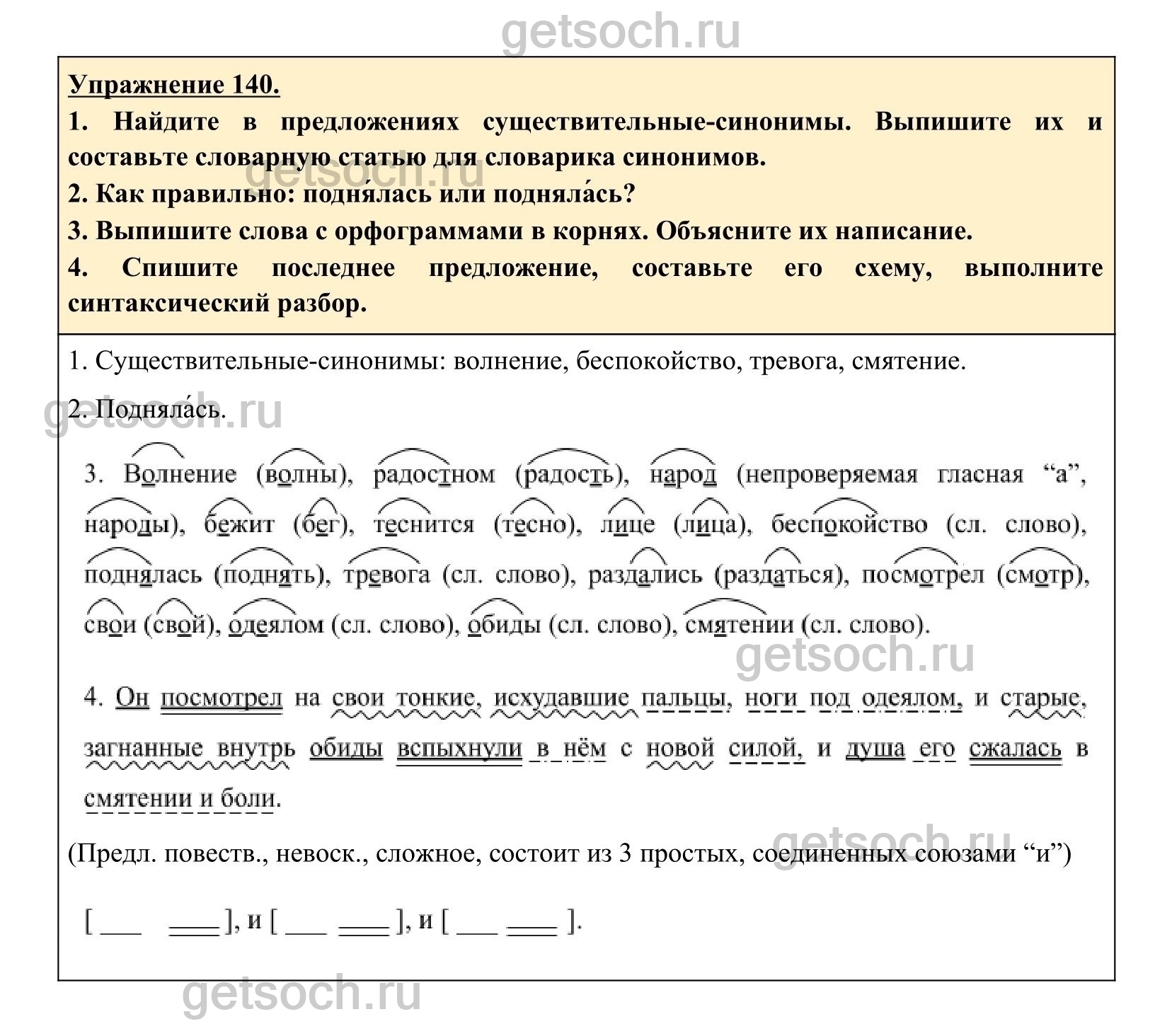 Рассмотрим ответы на Упражнение 140 из учебника по русскому языку для 6 класса Разумовской