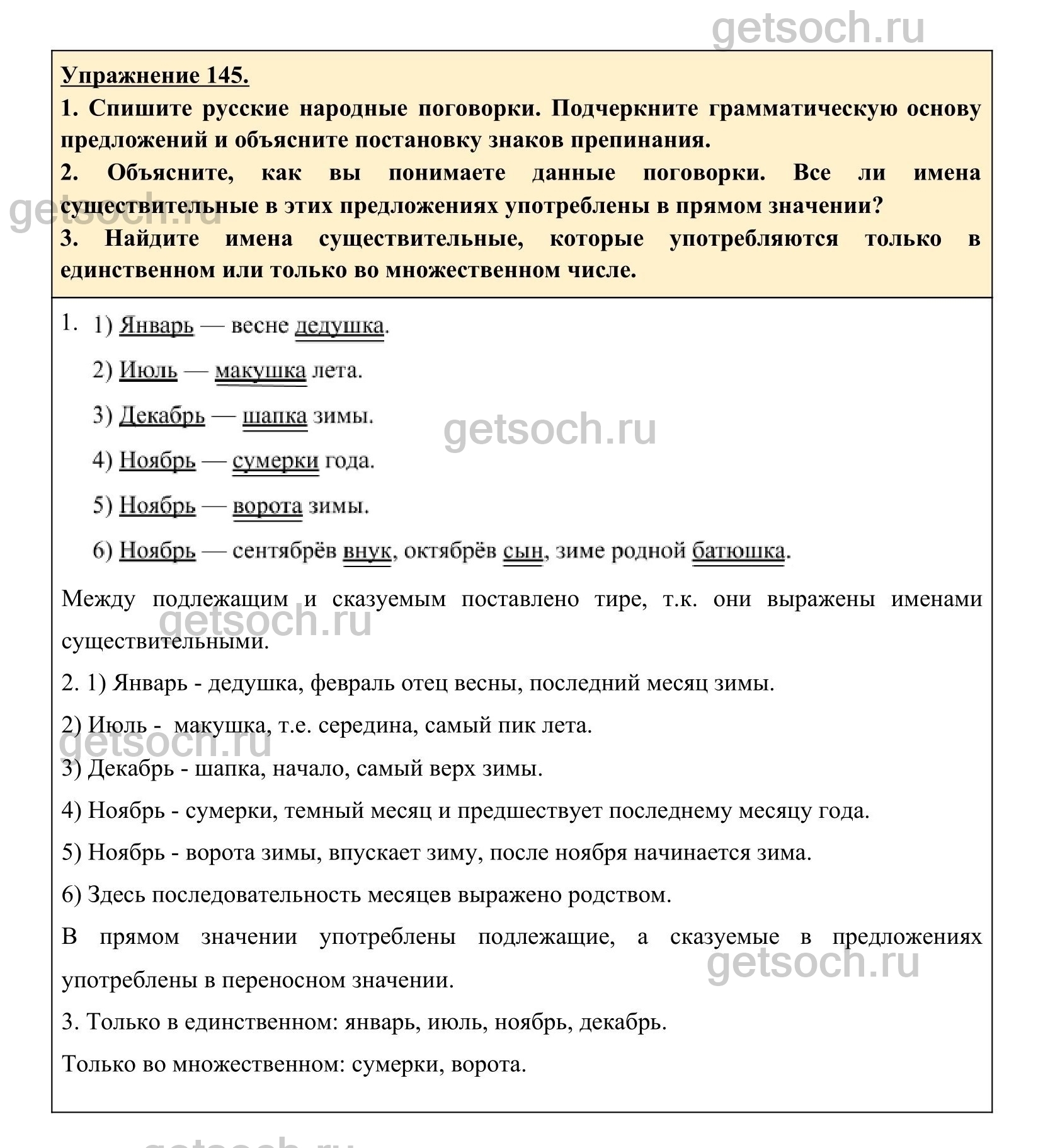 Рассмотрим ответы на Упражнение 145 из учебника по русскому языку для 6 класса Разумовской