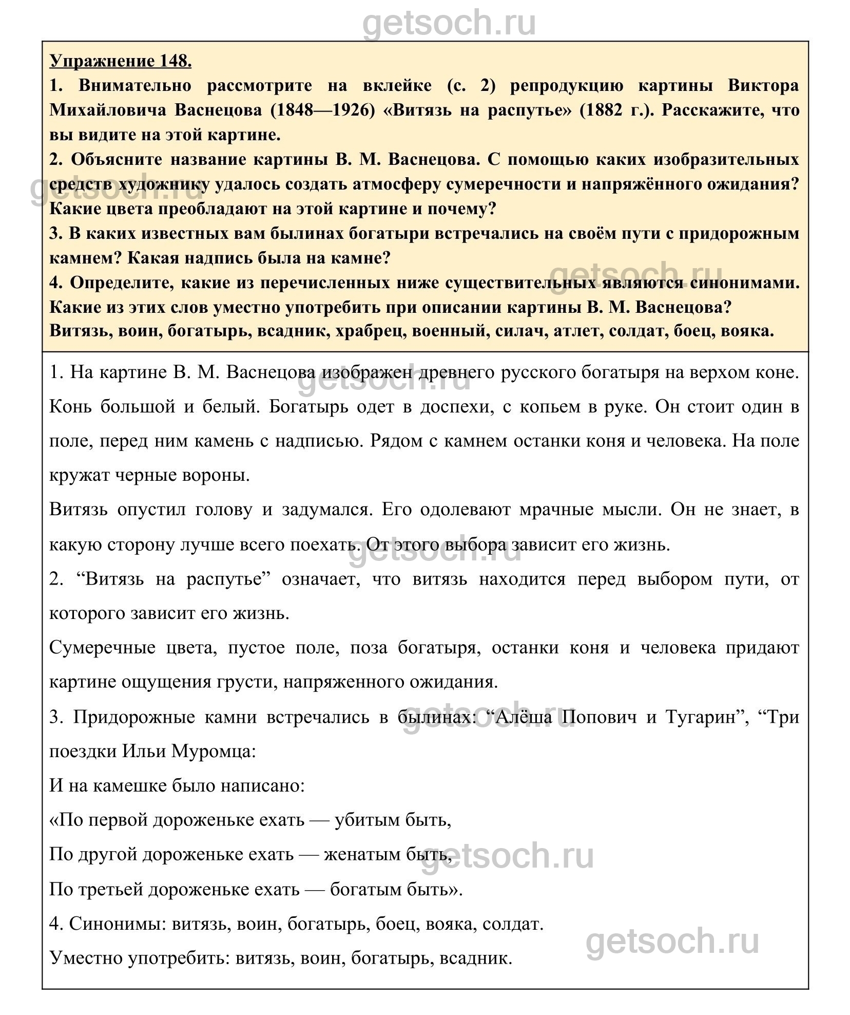 Рассмотрим ответы на Упражнение 148 из учебника по русскому языку для 6 класса Разумовской