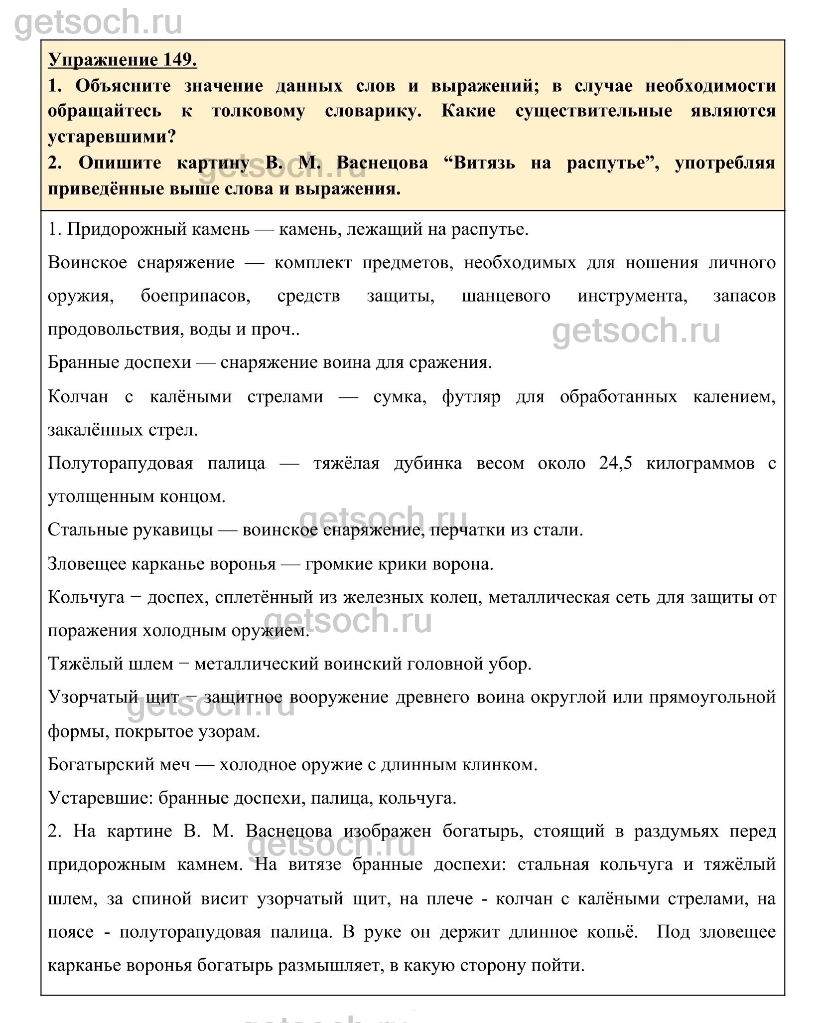 Рассмотрим ответы на Упражнение 149 из учебника по русскому языку для 6 класса Разумовской