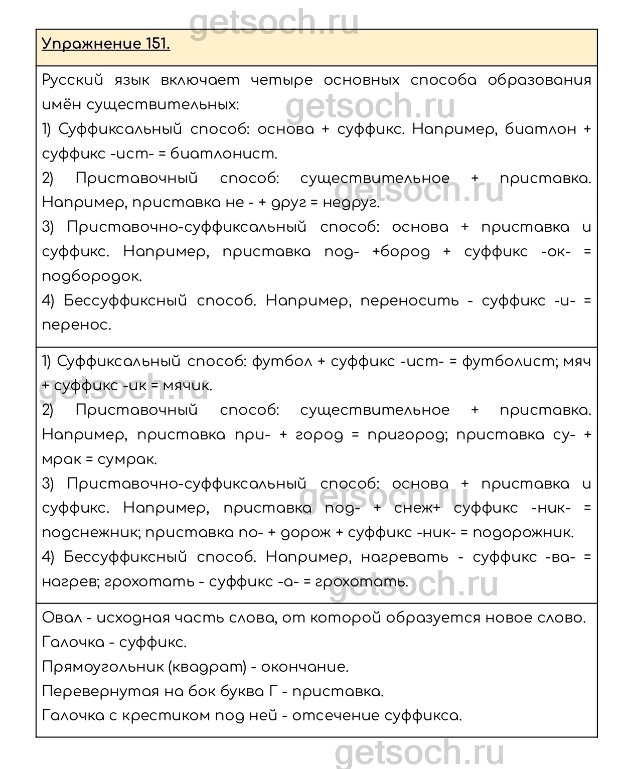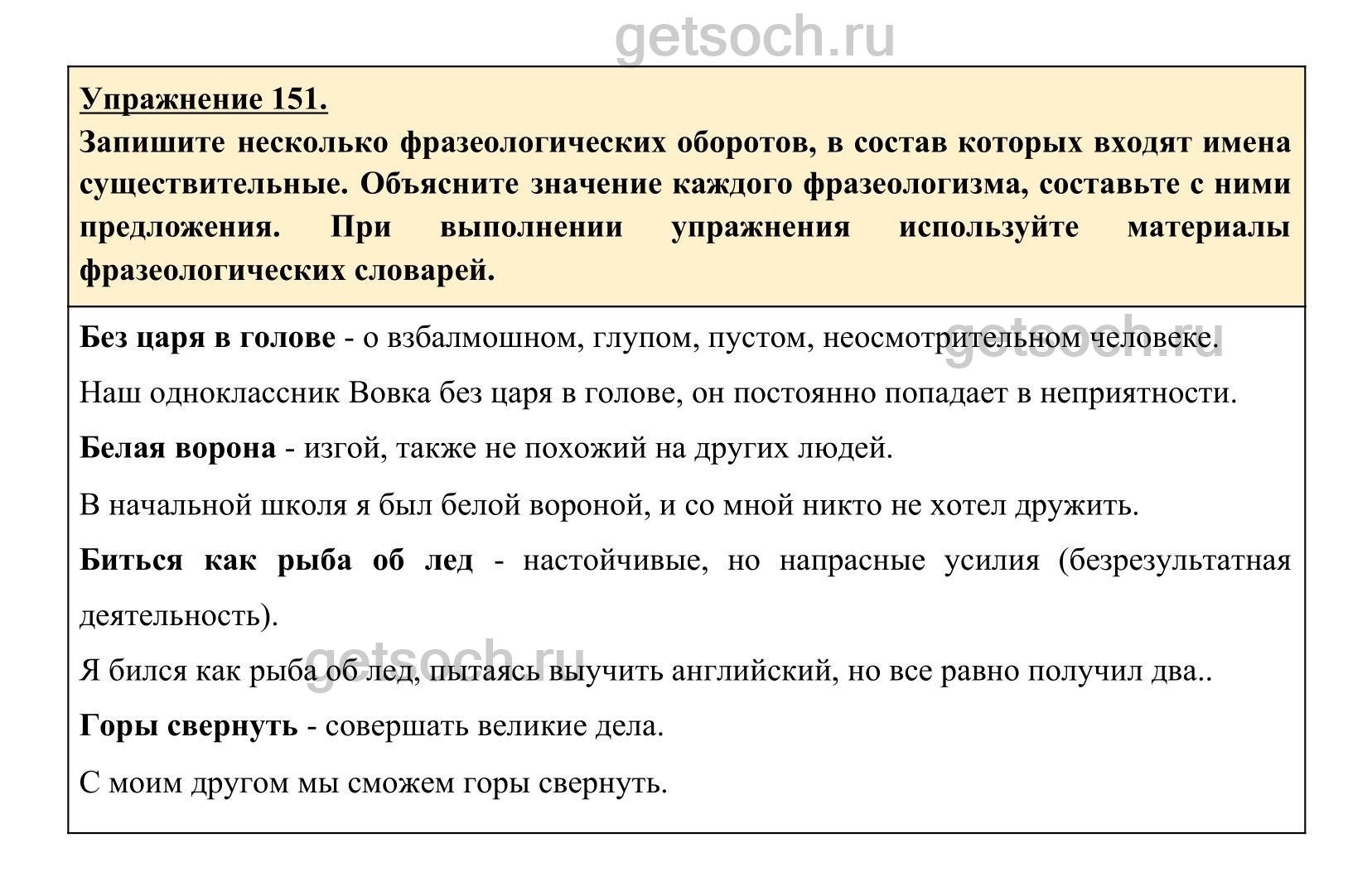 Рассмотрим ответы на Упражнение 151 из учебника по русскому языку для 6 класса Разумовской