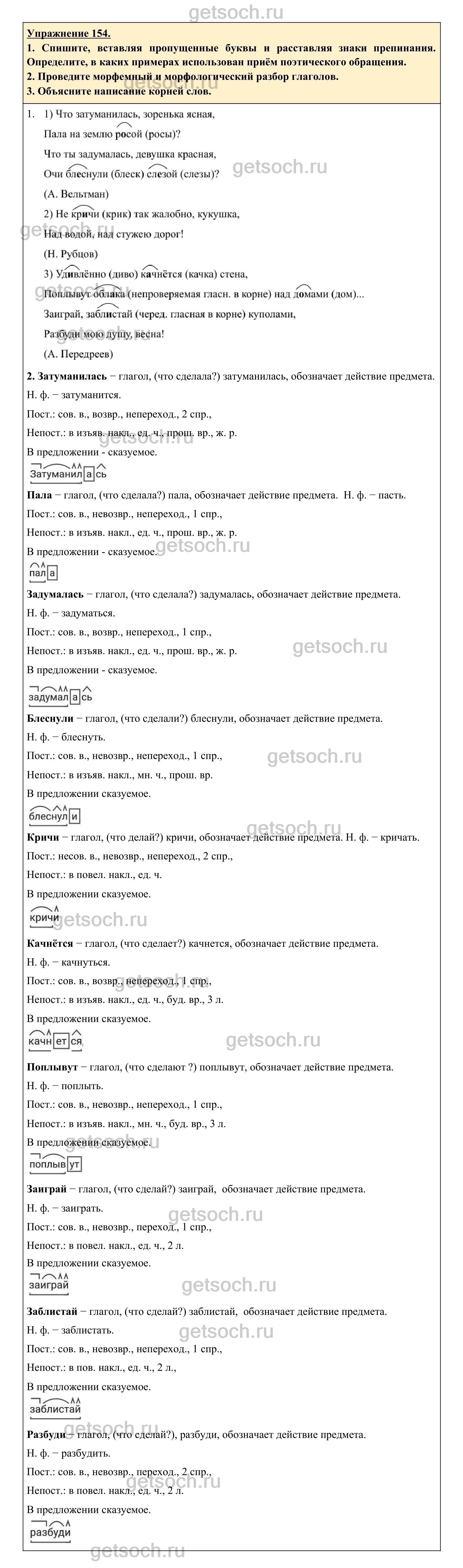 Рассмотрим ответы на Упражнение 154 из учебника по русскому языку для 6 класса Разумовской