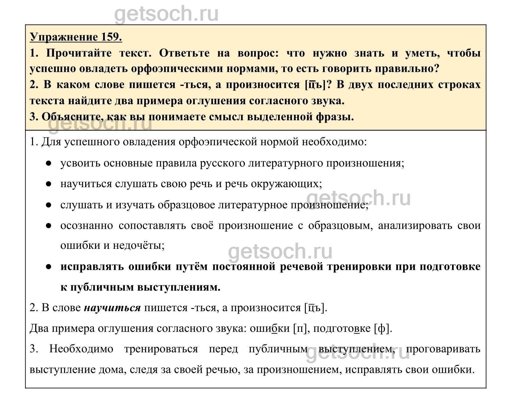 Рассмотрим ответы на Упражнение 159 из учебника по русскому языку для 6 класса Разумовской