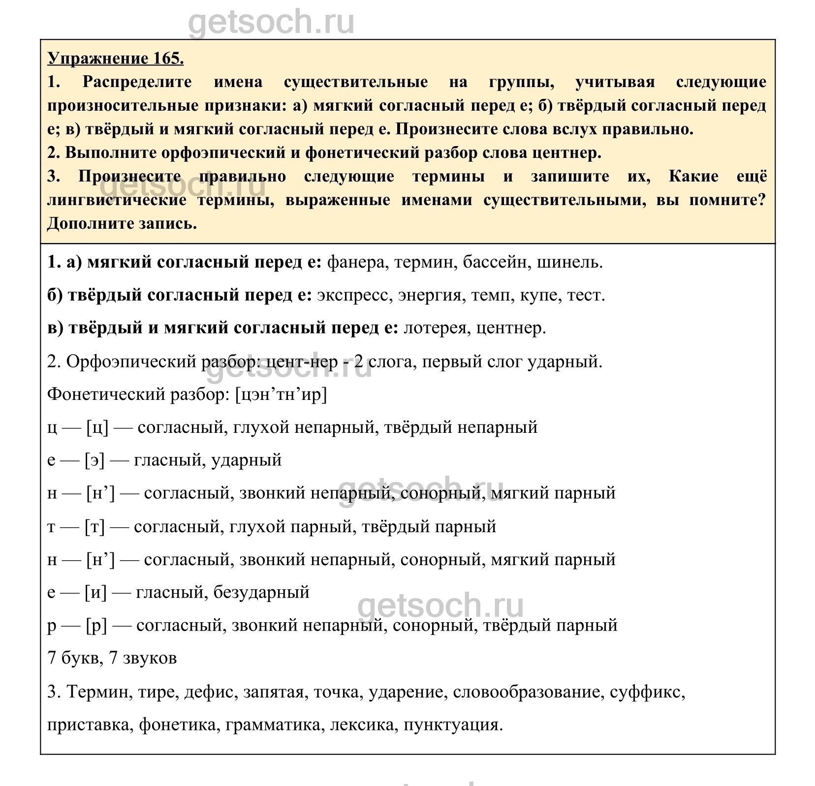 Рассмотрим ответы на Упражнение 165 из учебника по русскому языку для 6 класса Разумовской