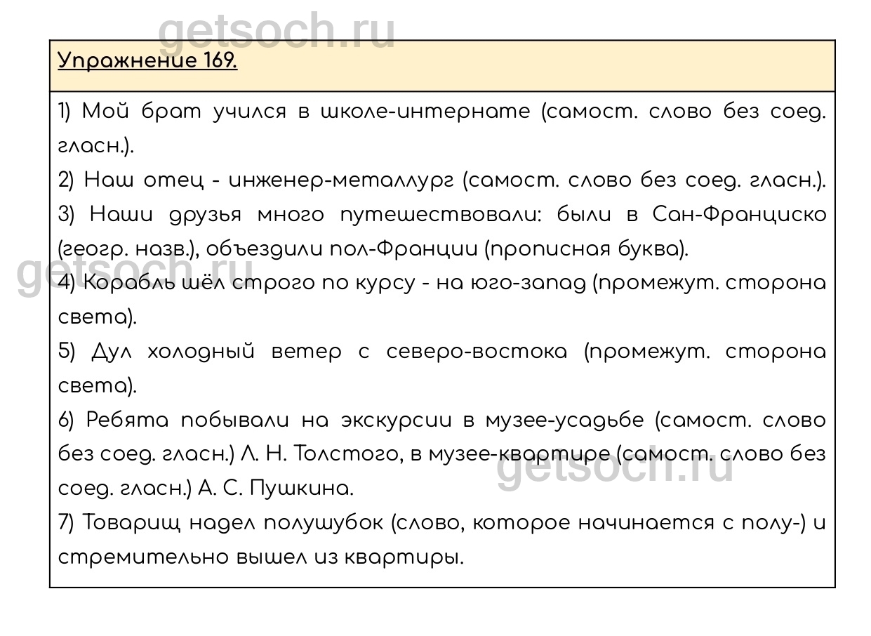 Рассмотрим ответы на Упражнение 169 из учебника по русскому языку для 6 класса Разумовской