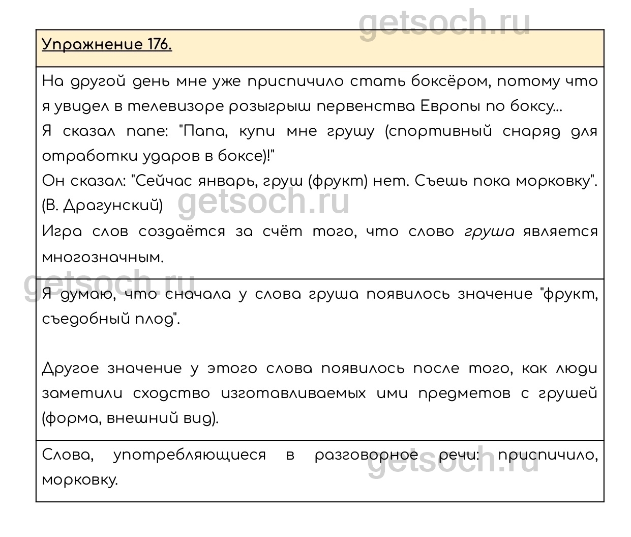 Рассмотрим ответы на Упражнение 176 из учебника по русскому языку для 6 класса Разумовской