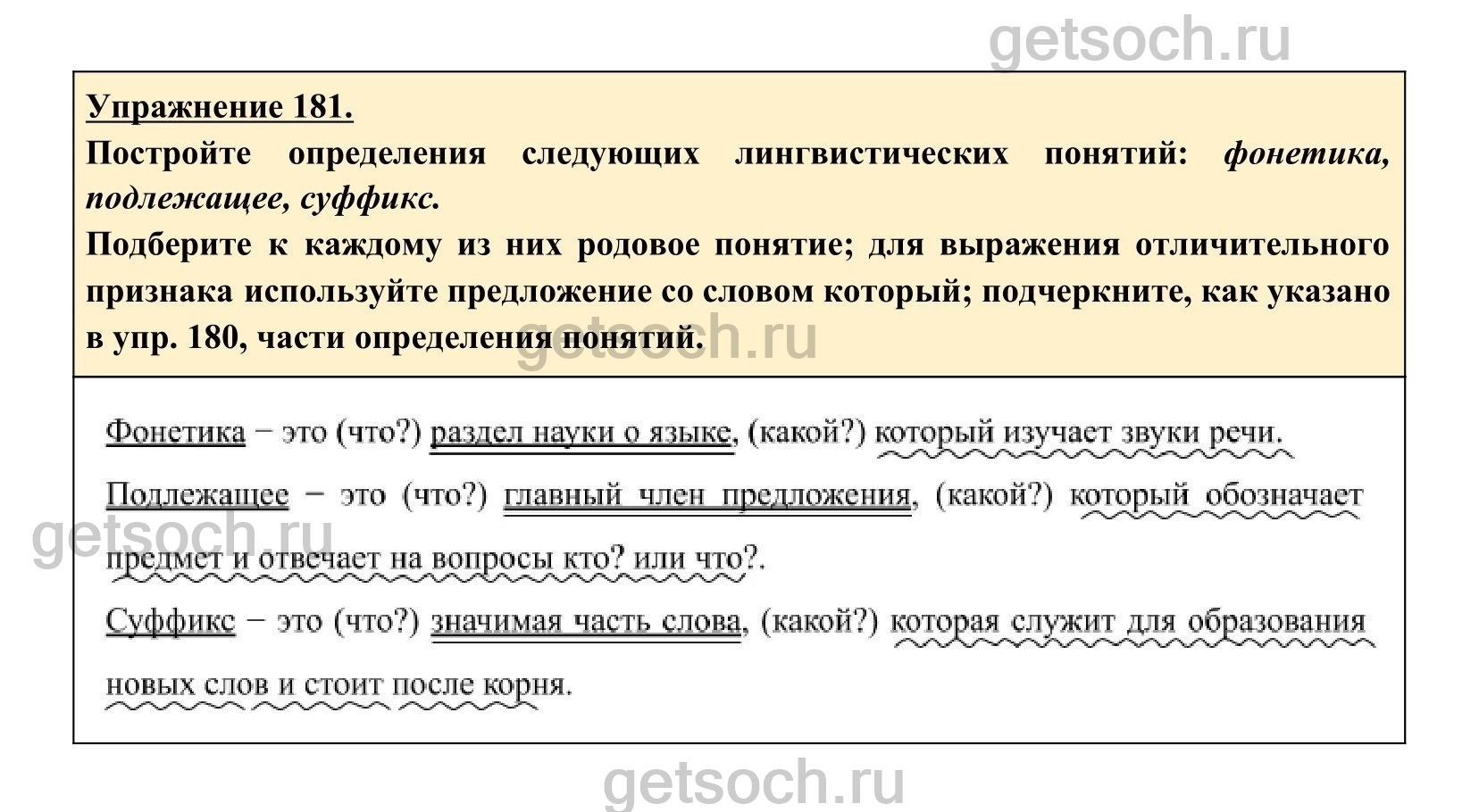 в упр. 180, части определения понятий.