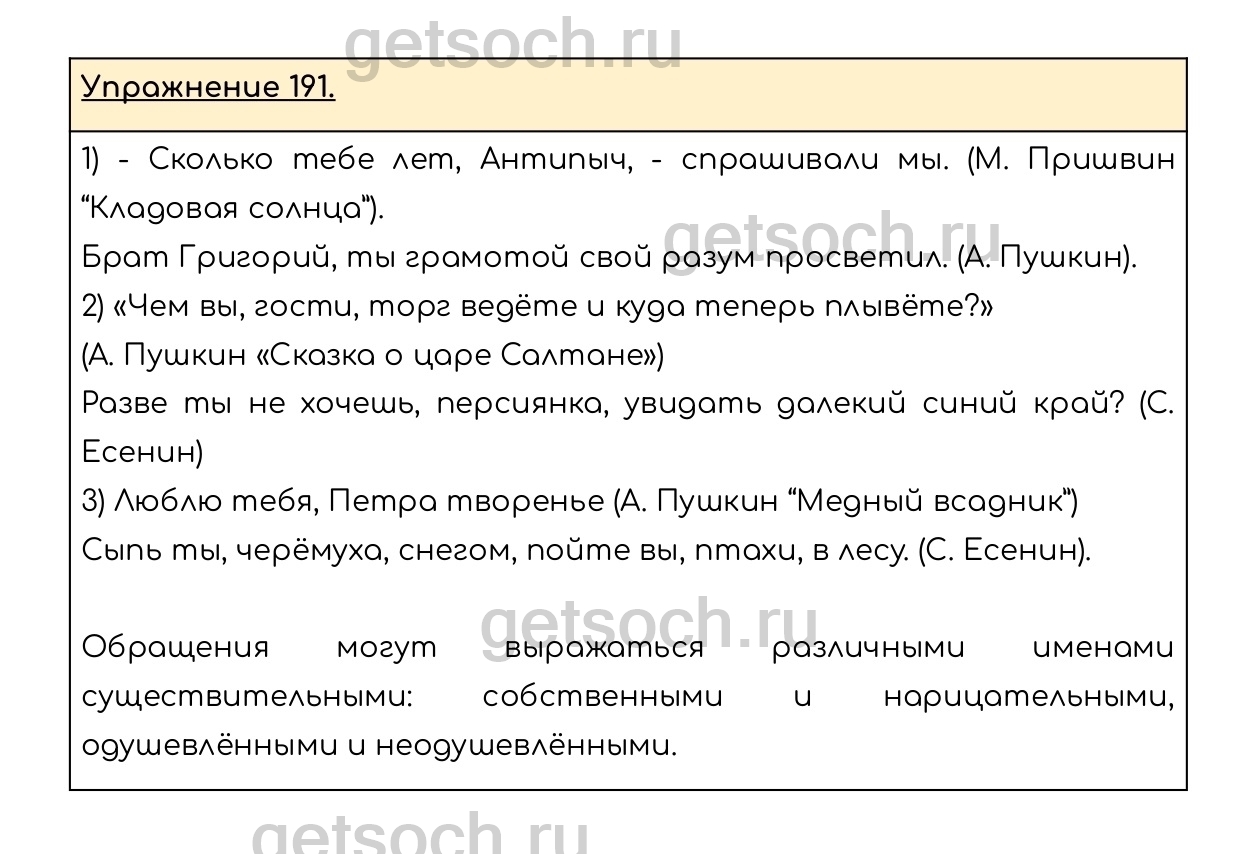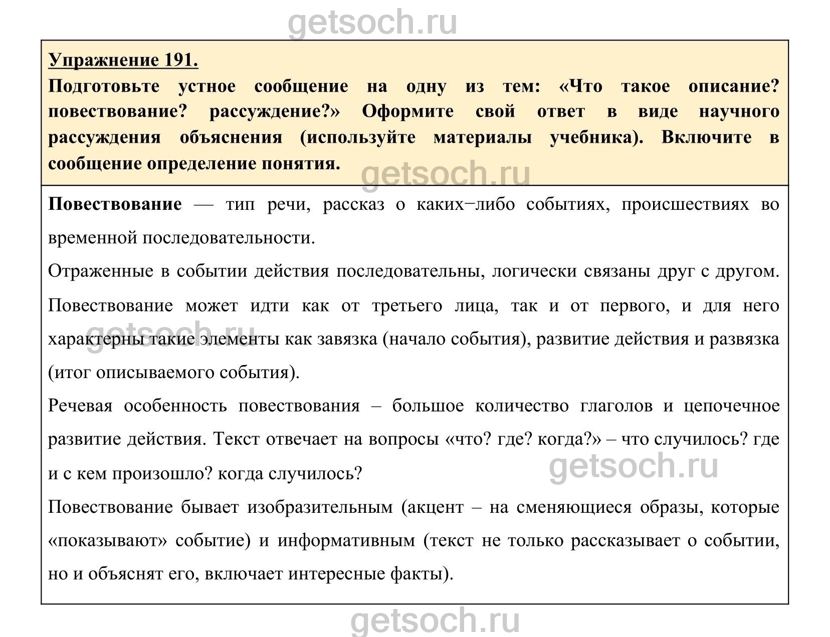 Рассмотрим ответы на Упражнение 191 из учебника по русскому языку для 6 класса Разумовской