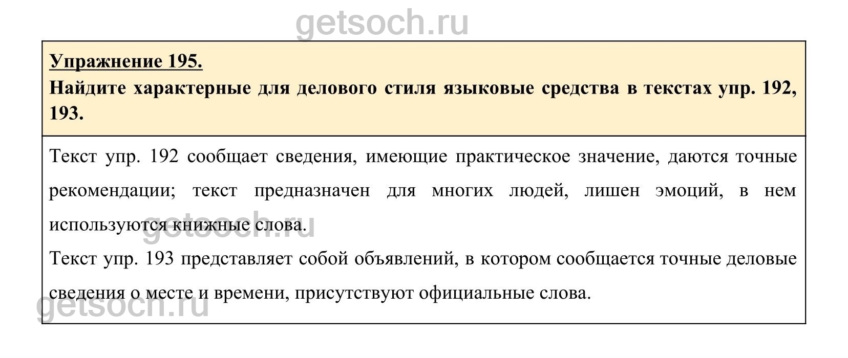 Найдите характерные для делового стиля языковые средства в текстах упр. 192,