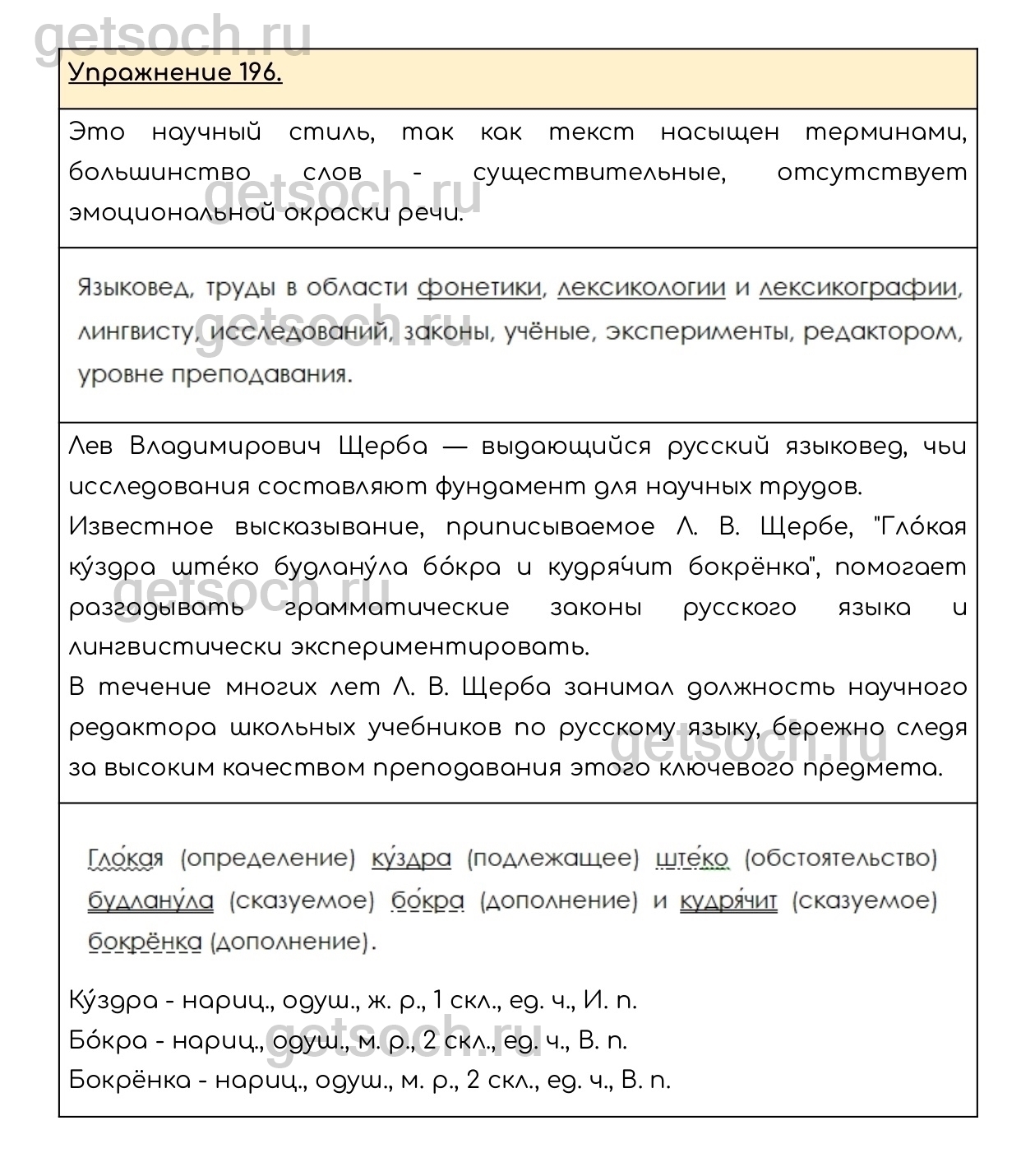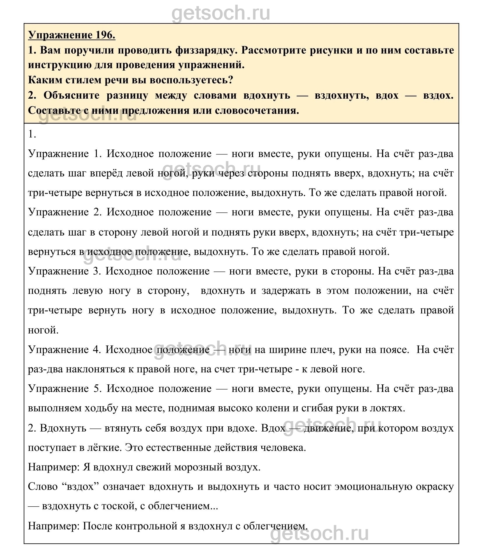 Рассмотрим ответы на Упражнение 196 из учебника по русскому языку для 6 класса Разумовской