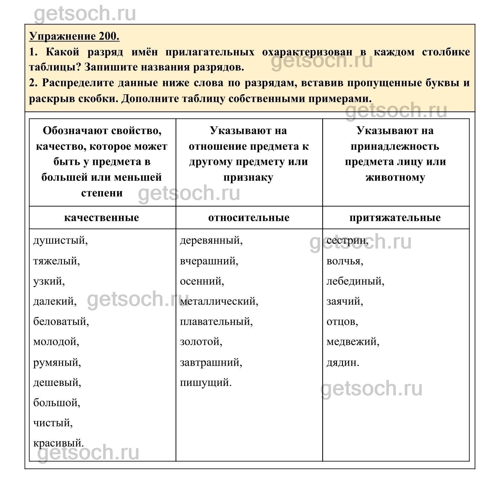 Рассмотрим ответы на Упражнение 200 из учебника по русскому языку для 6 класса Разумовской