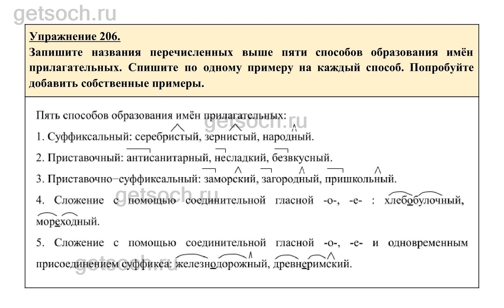 Рассмотрим ответы на Упражнение 206 из учебника по русскому языку для 6 класса Разумовской