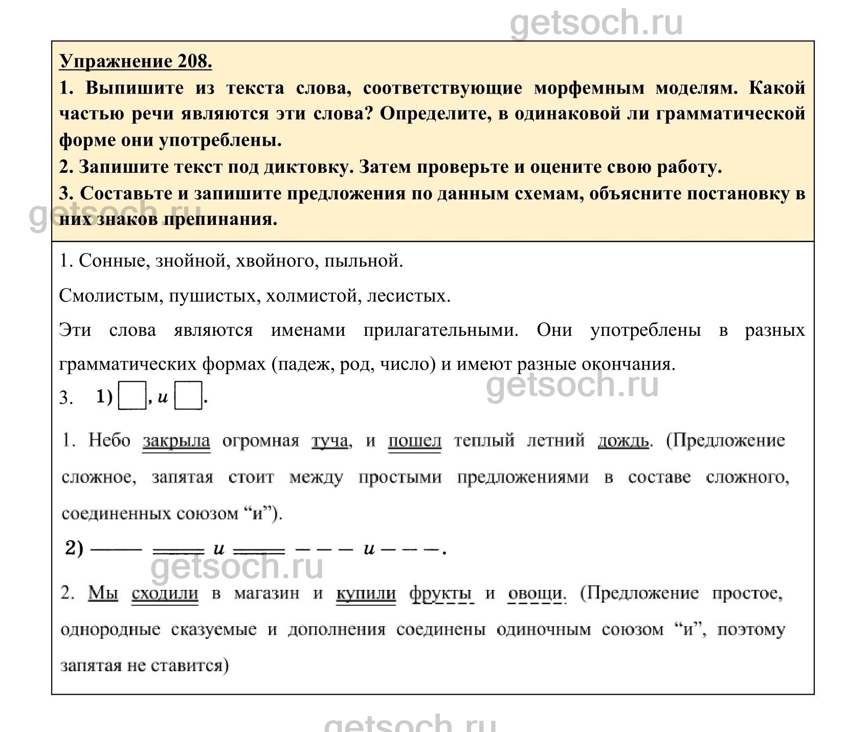 Рассмотрим ответы на Упражнение 208 из учебника по русскому языку для 6 класса Разумовской