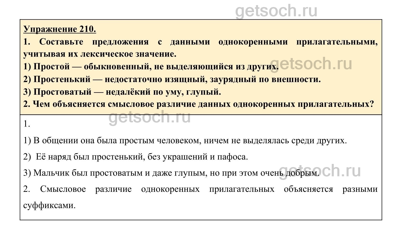Рассмотрим ответы на Упражнение 210 из учебника по русскому языку для 6 класса Разумовской