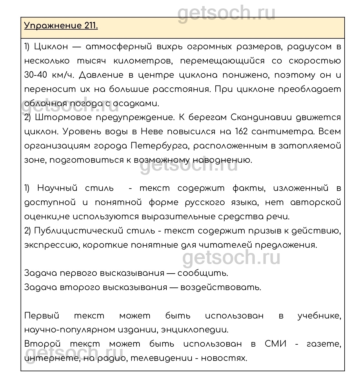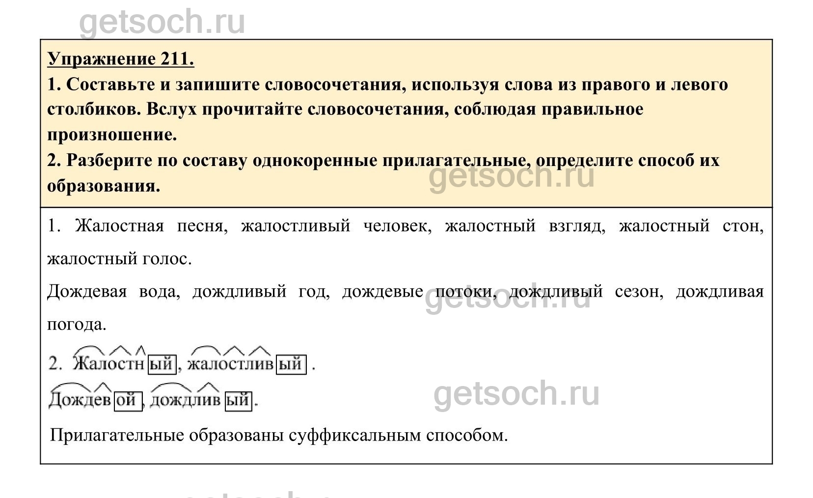 Рассмотрим ответы на Упражнение 211 из учебника по русскому языку для 6 класса Разумовской