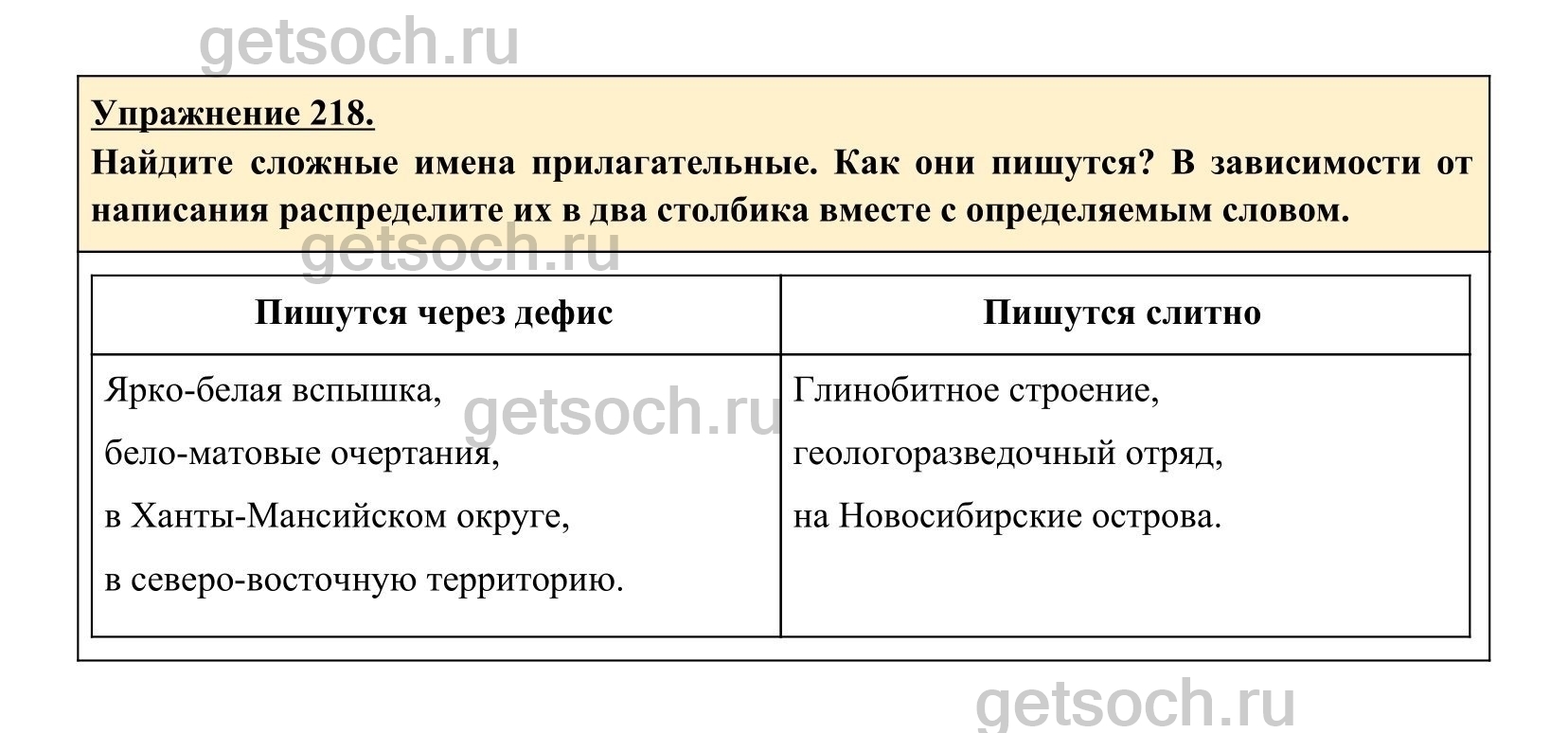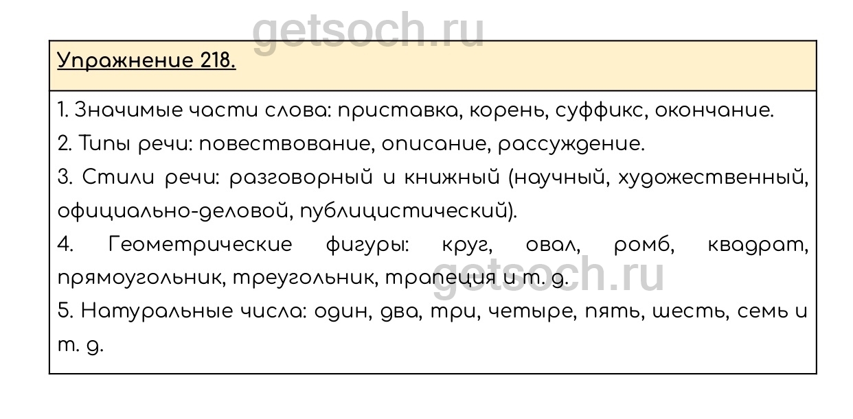 Рассмотрим ответы на Упражнение 218 из учебника по русскому языку для 6 класса Разумовской