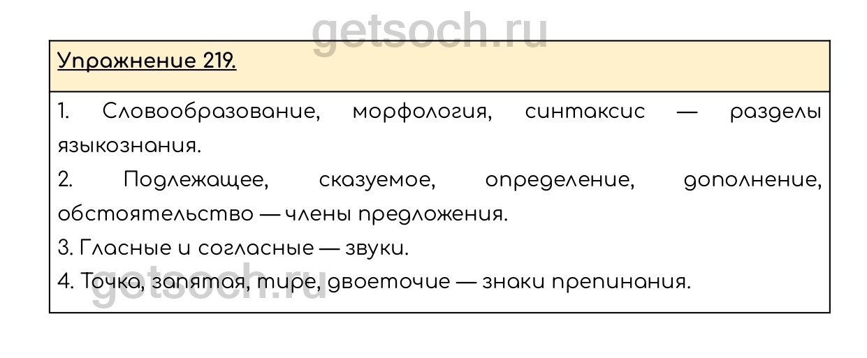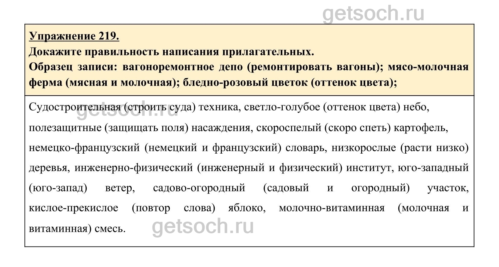 Рассмотрим ответы на Упражнение 219 из учебника по русскому языку для 6 класса Разумовской