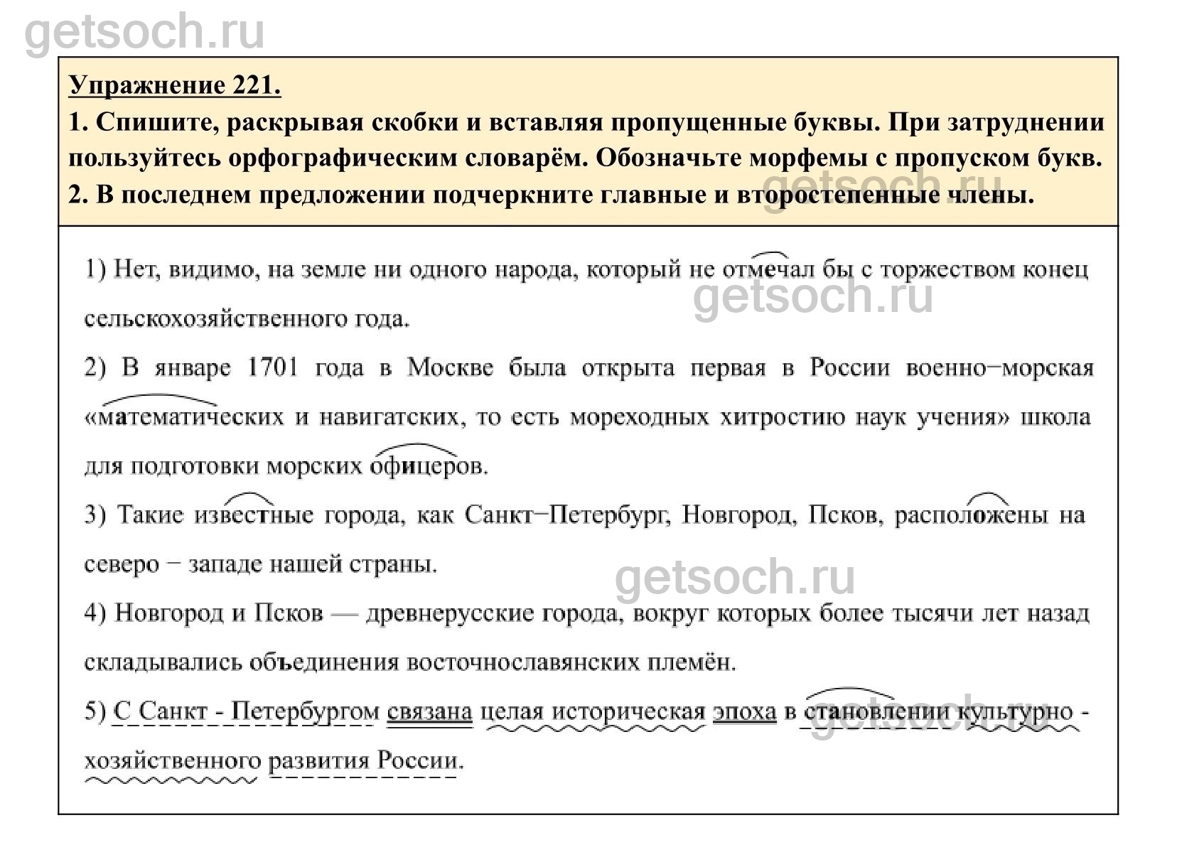 Рассмотрим ответы на Упражнение 221 из учебника по русскому языку для 6 класса Разумовской